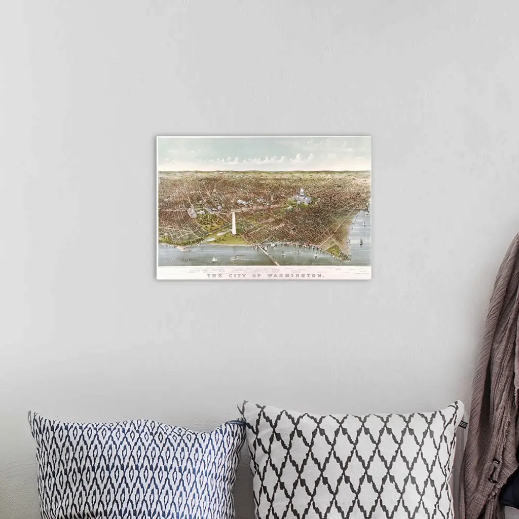 The City of Washington: Bird's-Eye View from the Potomac looking North, 1892 (originally colour lithograph) by Currier, N. (1813-88) and Ives, J.M. (1824-95)