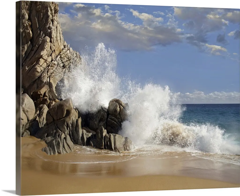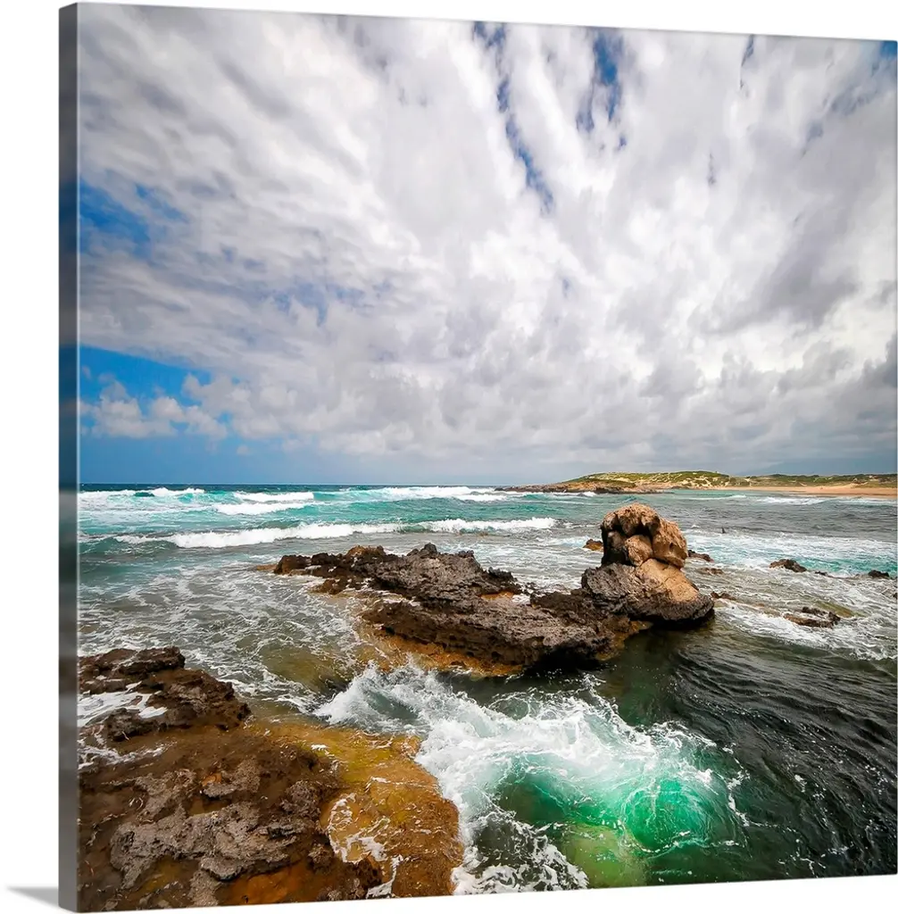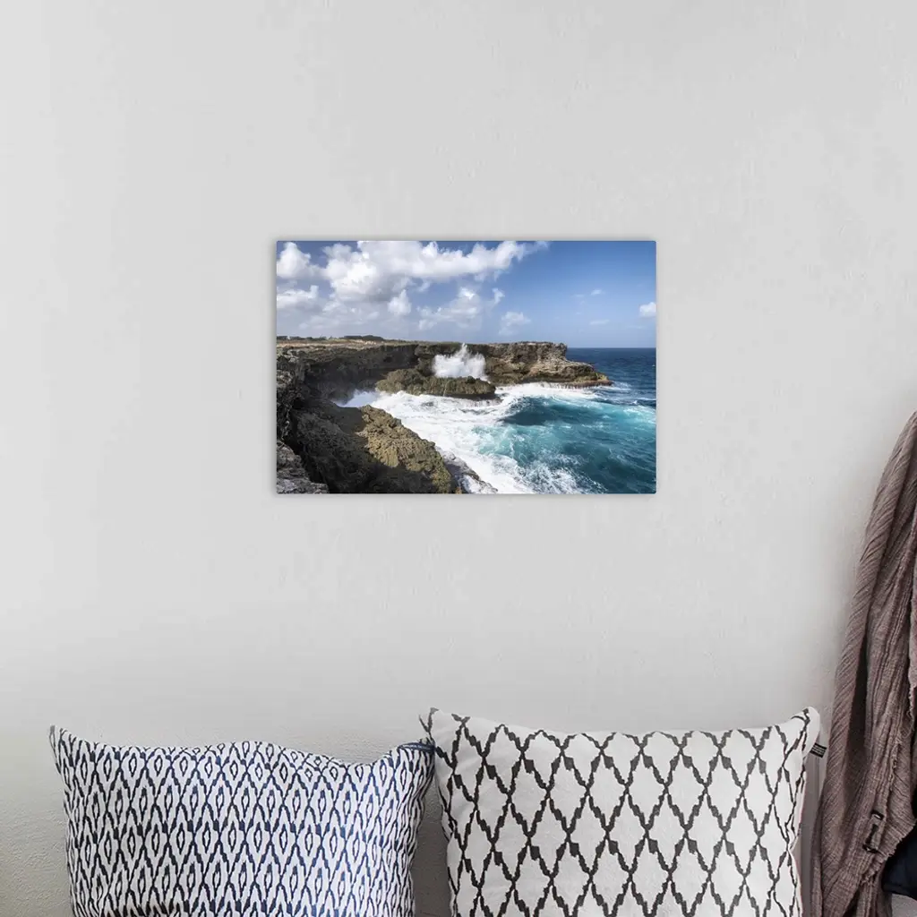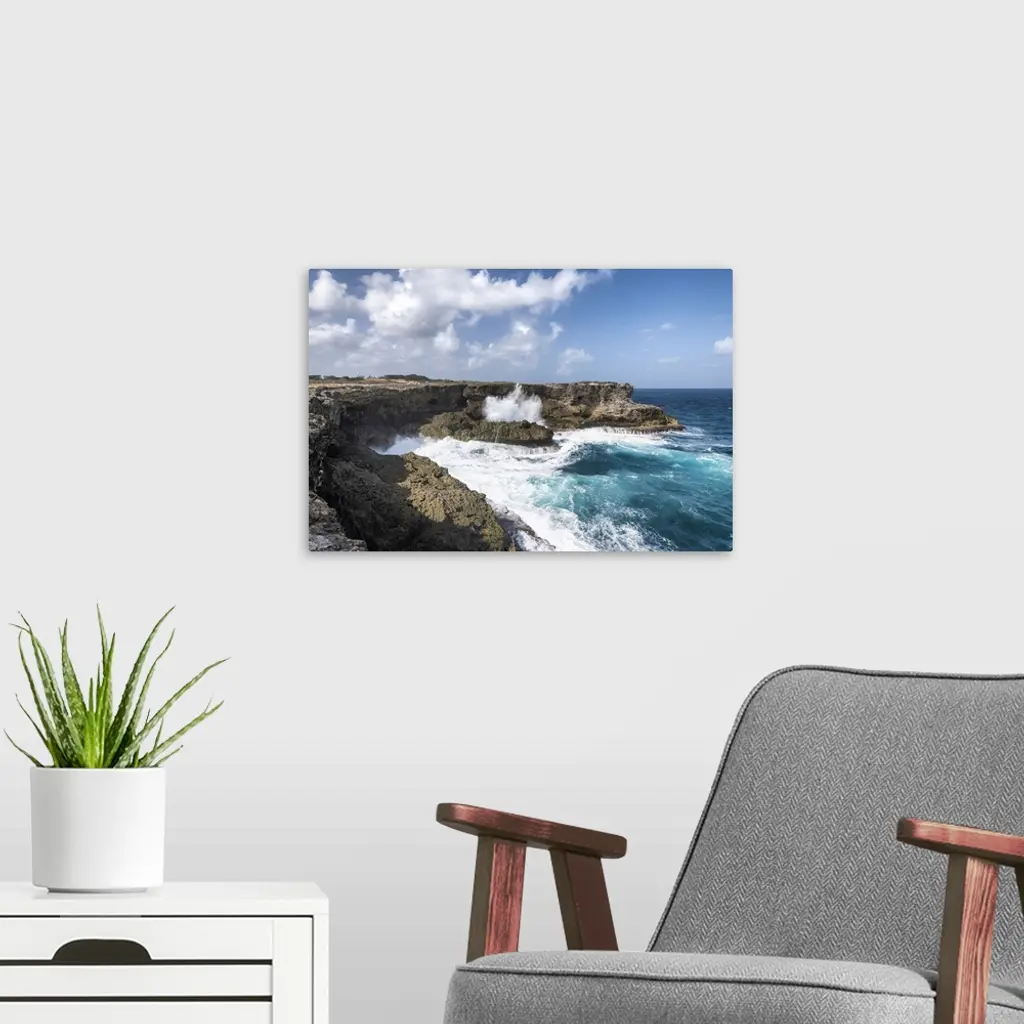 The cliff in front of the big waves of Atlantic Ocean, North Point, Barbados Island, Lesser Antilles, West Indies