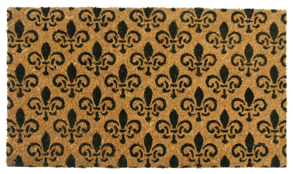 Themed after the great Clovis of the Frankish Empire, these French mats are intended to add powerful yet elegant imagery for your homes front or patio doorway. Clovis was founder of the famous Merovingian dynasty, one of the early medieval dynasties after the demise of the Roman Empire. It is said that Clovis was responsible for the creation of the fleur de lis, making it a symbol associated with his name. Painted on the surface of these door entry mats are two giant black fleur de lis symbols. Not only pleasant looking, this entryway mat is available in two sizes to fit your homes entryway. Available in 24 x 57, these large doormats are designed to fit in front of a double doorway. For those with a smaller single doorway, this estate style doormat is also available in a standard 18 x 30. This coco mat is not only available in multiple sizes, but it is also capable of handling a variety of weather conditions due to its weather resistance. Clovis conquered his empire no matter how the weather treated him, and these French mats are also made to endure the elements. Neither wet weather nor the sun will cause immediate damage to these French mats, giving these door entry mats a quality tough like Clovis. Not only weather resistant, each coco coir doormat is made to help you keep your home cleaner. Being a king, it is likely Clovis liked a clean home the same way you do! Thanks to the coarse surfacing of these French mats, they are capable of providing a buffer against outdoor invaders such as dirt, mud, or other forms of debris from the outside. As long as you brush your shoes enough against the rough surface of this coco mat, a great deal of unwanted particles will be released from the bottom of your shoes, making this doormat a doormat worthy of the name of Clovis.