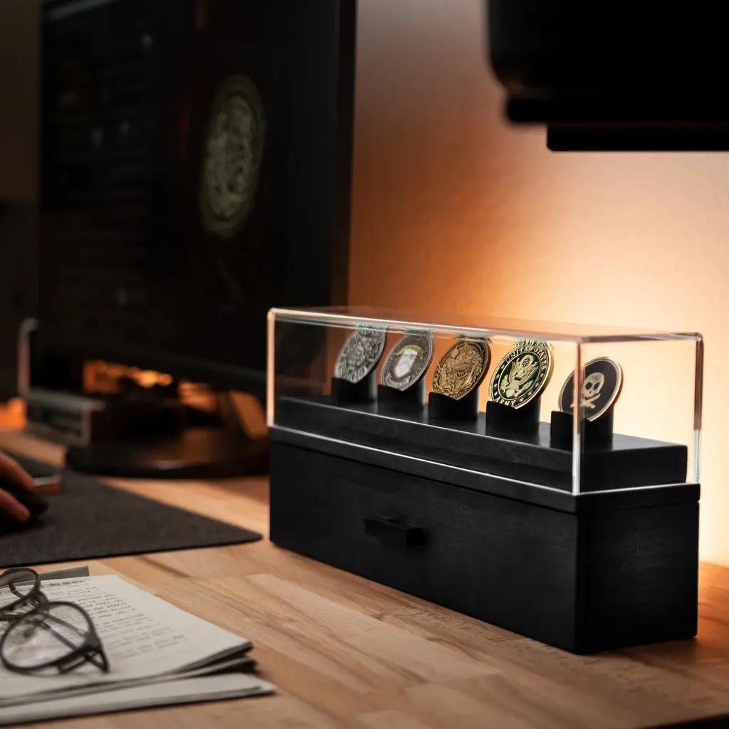 Every coin tells its own story. Let The Coin Deck share that story.Designed to showcase your favorite coins, giving them the platform they deserve, while the drawer organizes the rest of your collection. The acrylic cover protects the coins from harmful dust particles. You’ve done the collecting, let The Coin Deck do the protecting!Showcase your favorite coinsOrganize different shape and size coins in the drawerProtect your coins from dustMinimalist compact designArrives fully assembled