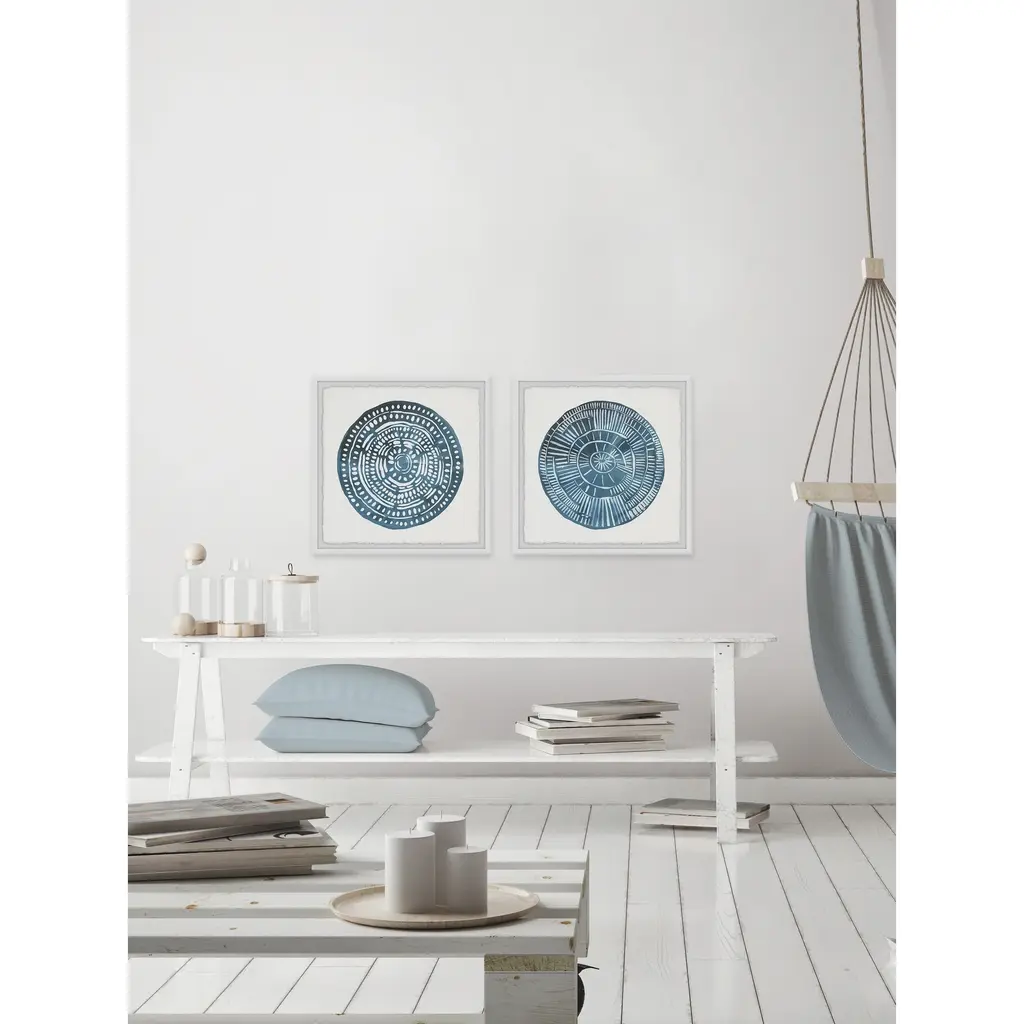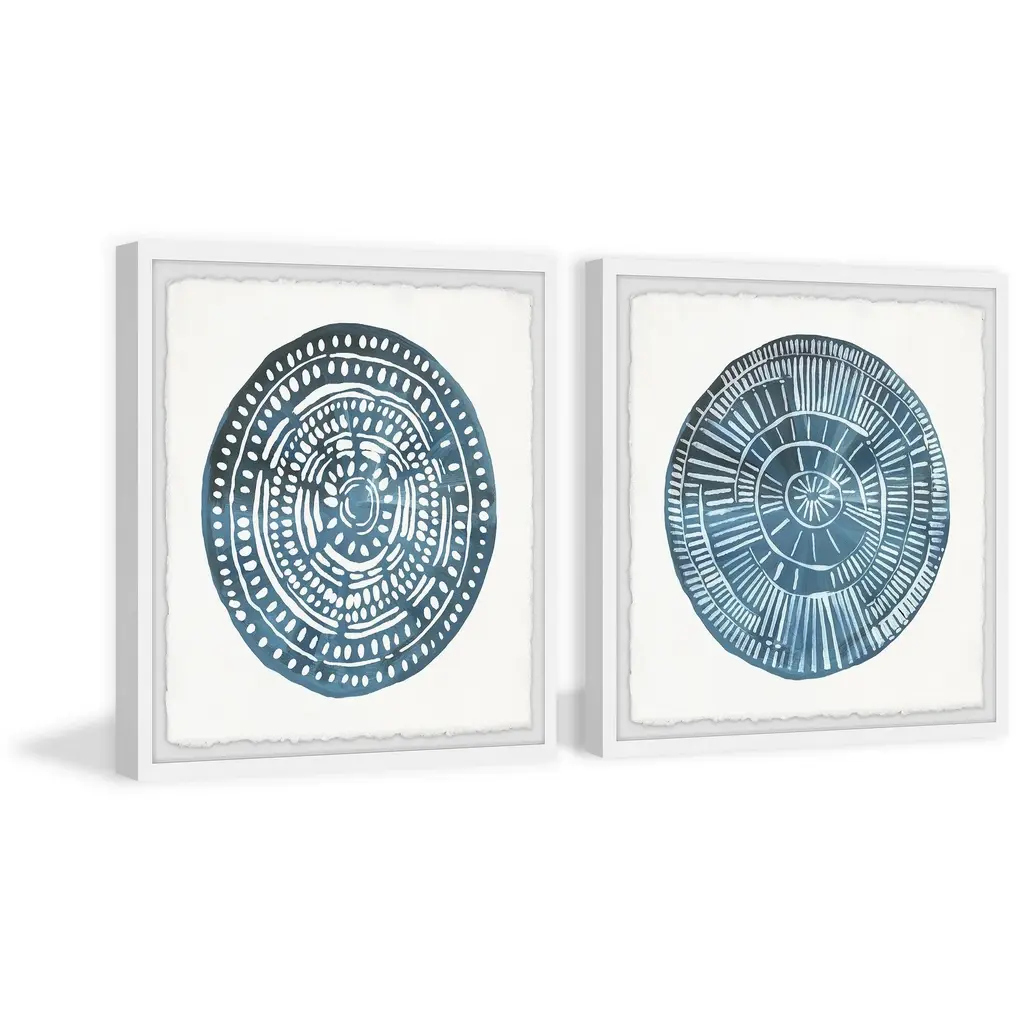 The Curated Nomad Handmade Blue Diptych Medallion Framed Art - Multi-Color - 2Pcs Of 32 X 32