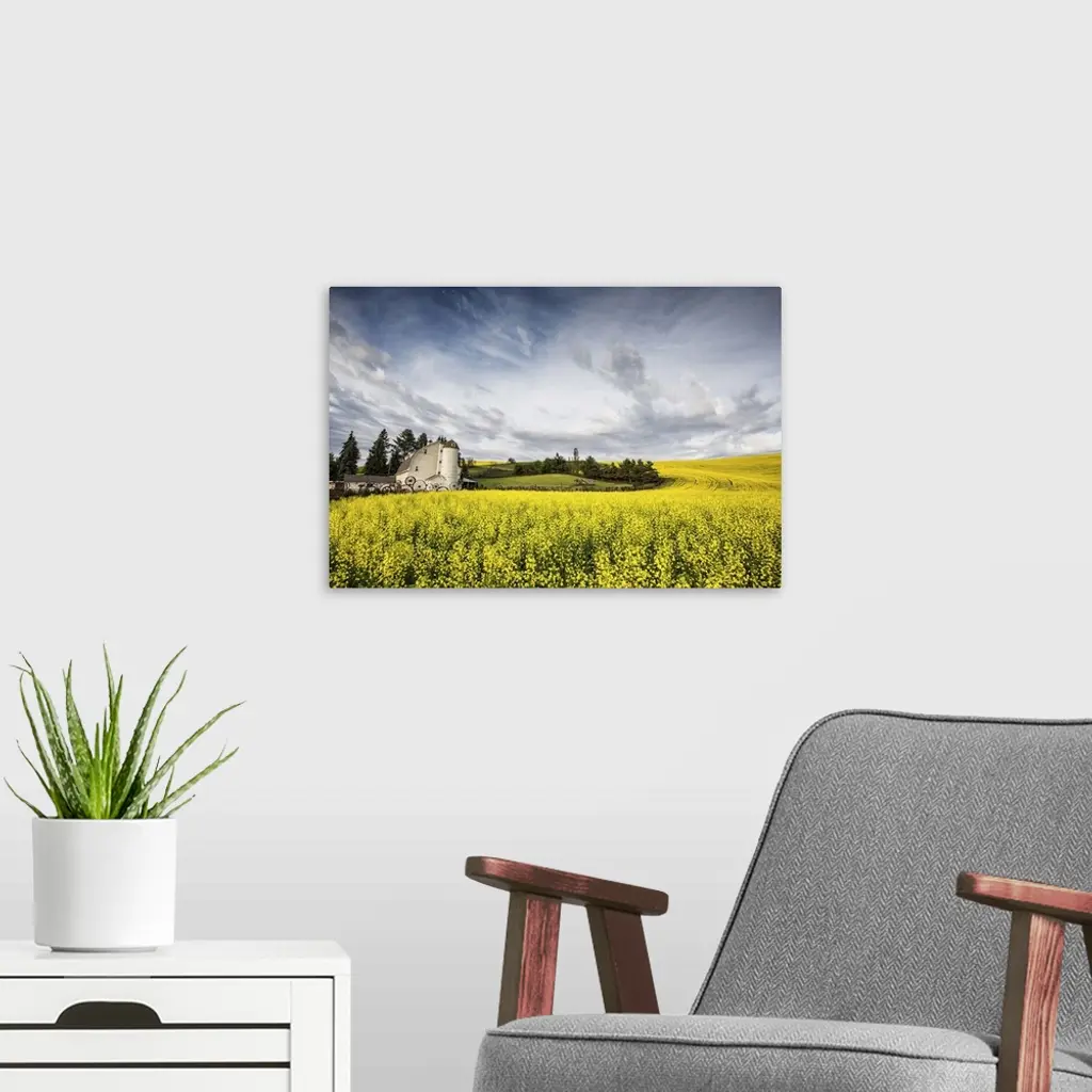 The Dahmen Barn and yellow Cannola Fields in the Palouse, Washington