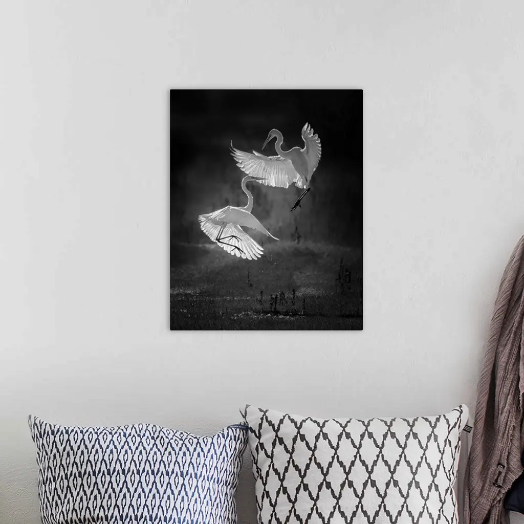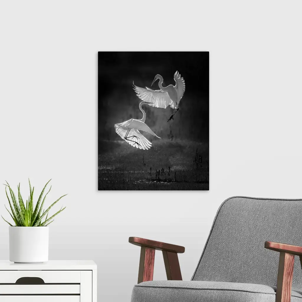 The Dance Of Egrets wall art for home and office decor. Discover canvas art prints, photos, mural, big canvas art and framed wall art in GreatBigCanvas.com's varied collections.