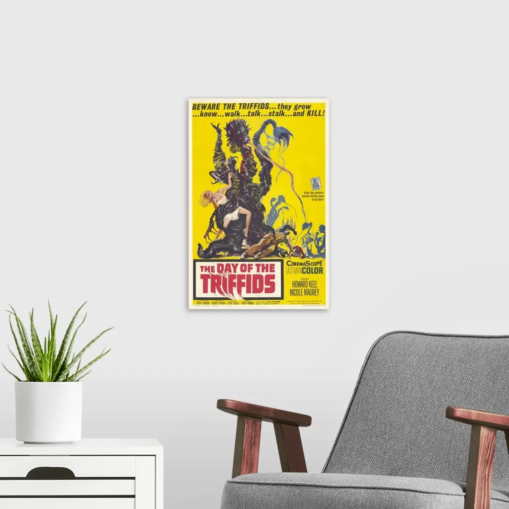 The majority of Earth's population is blinded by a meteor shower which also causes plant spores to mutate into giant carnivores. Well-done adaptation of John Wyndham's science fiction classic; Philip Yordan acknowledged "fronting" for blacklisted screenwriter Gordon, who finally received credit in 1996.