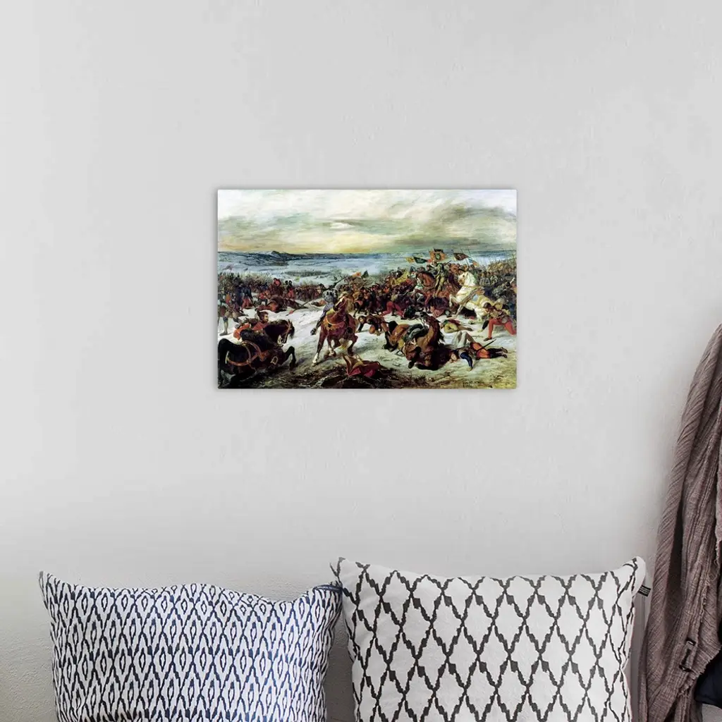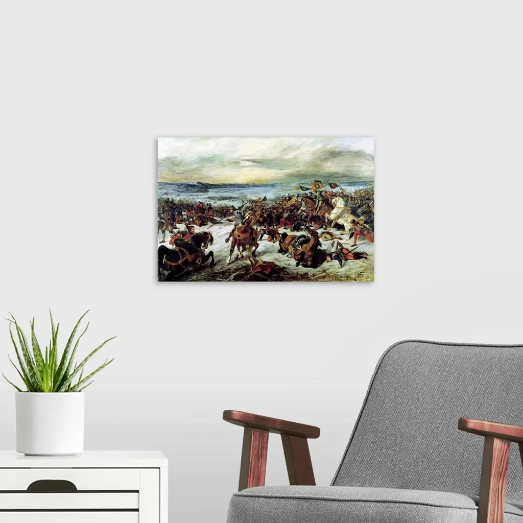 XCY6867 The Death of Charles the Bold (1433-77) at the Battle of Nancy, 5th January 1477, 1831 (oil on canvas) by Delacroix, Ferdinand Victor Eugene (1798-1863); 237x356 cm; Musee des Beaux-Arts, Nancy, France; (add. info.: Mort de Charles le Temeraire, duc de Bourgogne a la Bataille de Nancy); Giraudon; French, out of copyright
