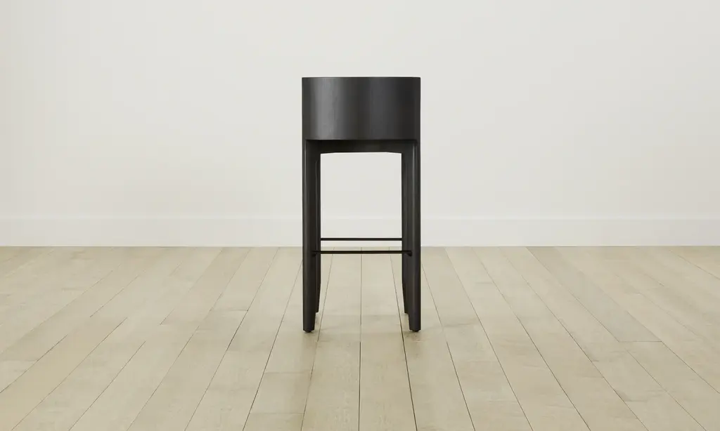 The Delancey Bar & Counter Stool brings depth and dimension into your space with its mixed materiality. Made from ash, it has an elegantly curved back, upholstered seat, and metal footrest. Handcrafted in North Carolina.