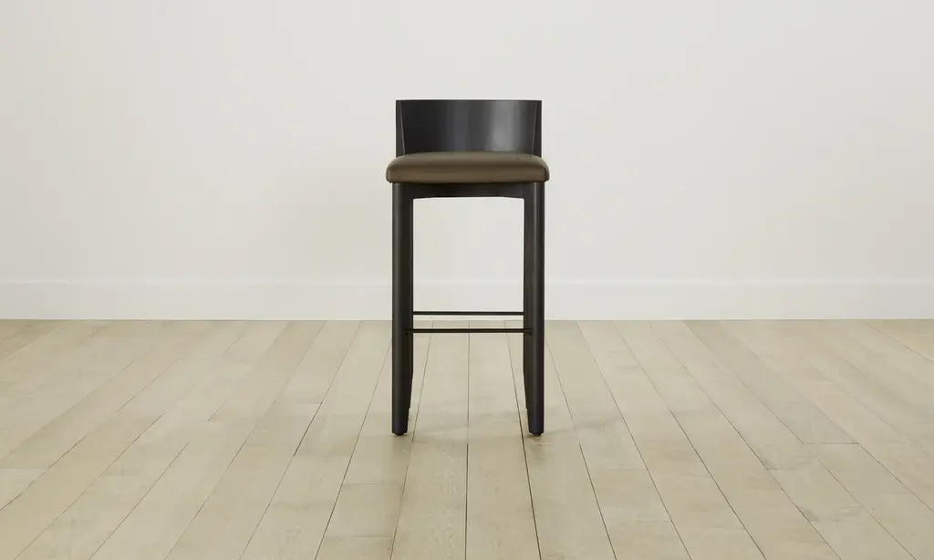 The Delancey Bar & Counter Stool brings depth and dimension into your space with its mixed materiality. Made from ash, it has an elegantly curved back, upholstered seat, and metal footrest. Handcrafted in North Carolina.