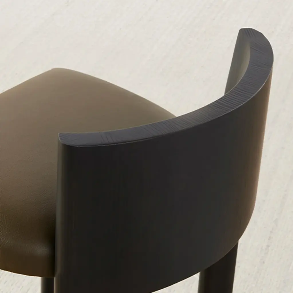 The Delancey Bar & Counter Stool brings depth and dimension into your space with its mixed materiality. Made from ash, it has an elegantly curved back, upholstered seat, and metal footrest. Handcrafted in North Carolina.