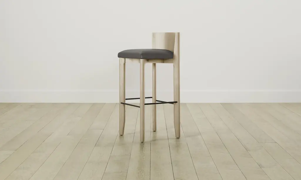 The Delancey Bar & Counter Stool brings depth and dimension into your space with its mixed materiality. Made from ash, it has an elegantly curved back, upholstered seat, and metal footrest. Handcrafted in North Carolina.