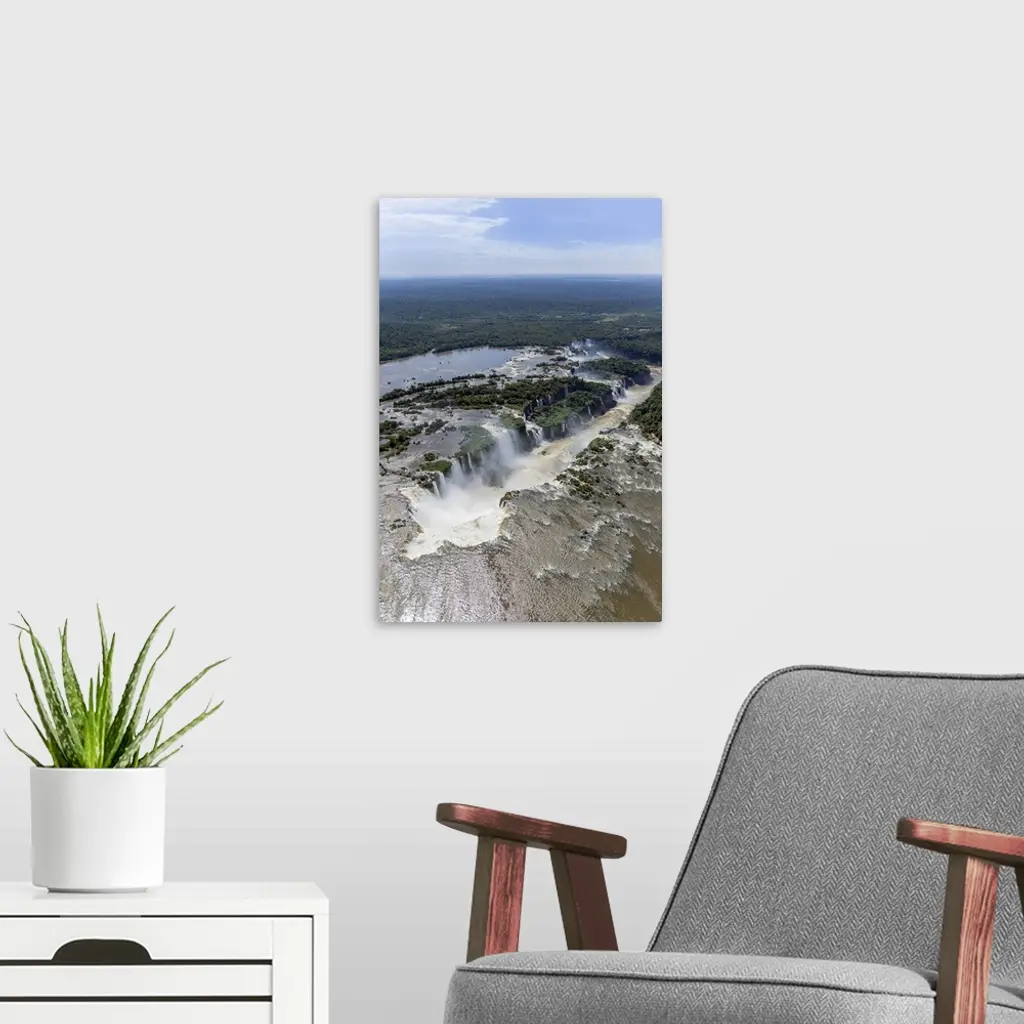 Aerial view of the Devil's Throat and the Iguassu River, Iguazu Falls, UNESCO World Heritage Site, Parana, Brazil, South America