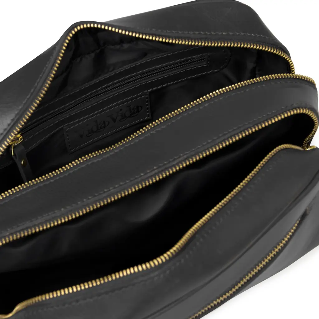 We have lovingly handmade each one using our finest leather that has taken us over 2 years to perfect. It’s soft and characterful and ages beautifully. Each of our leather wash bags are carefully handmade to ensure they are of the highest quality. Our vintage-inspired design is super functional – perfect for use at home or on your travels. There are 2 zip sections for easy organisation and a handy zip pocket on the front. Inside there is a black waterproof lining, a zip pocket and we use hardwearing vintage gold zips throughout. It arrives in a Vida Vida dust bag. With every sale, we guarantee the provision of a school bag to a Cambodian child in need, through the awesome charity – United World Schools. We include details of how you’ve helped – a great addition if it’s a gift.