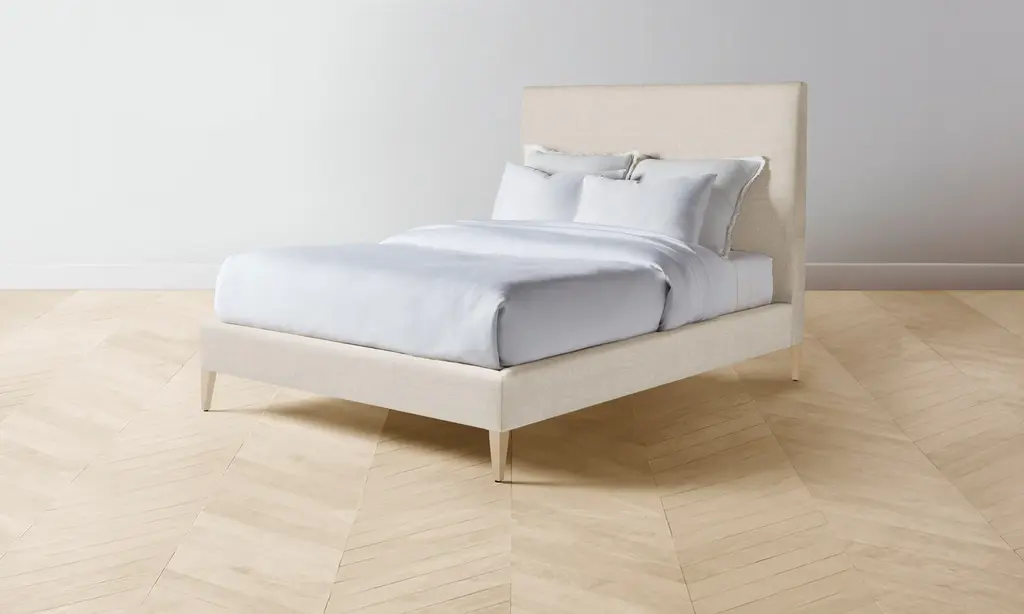 The Essex Bed - Heritage Belgian Linen Egret - Queen / 50" Height / Driftwood Ash