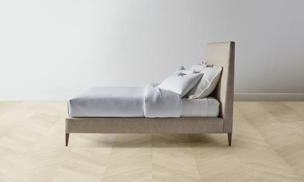 The Essex Bed - Heritage Belgian Linen Thyme - Queen / 50" Height / Coffee Ash
