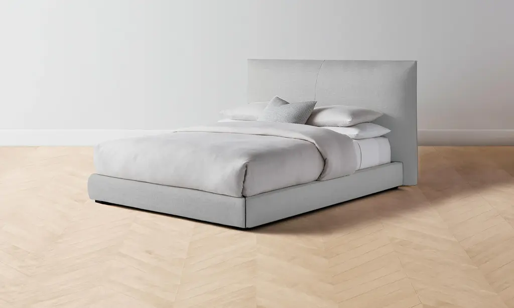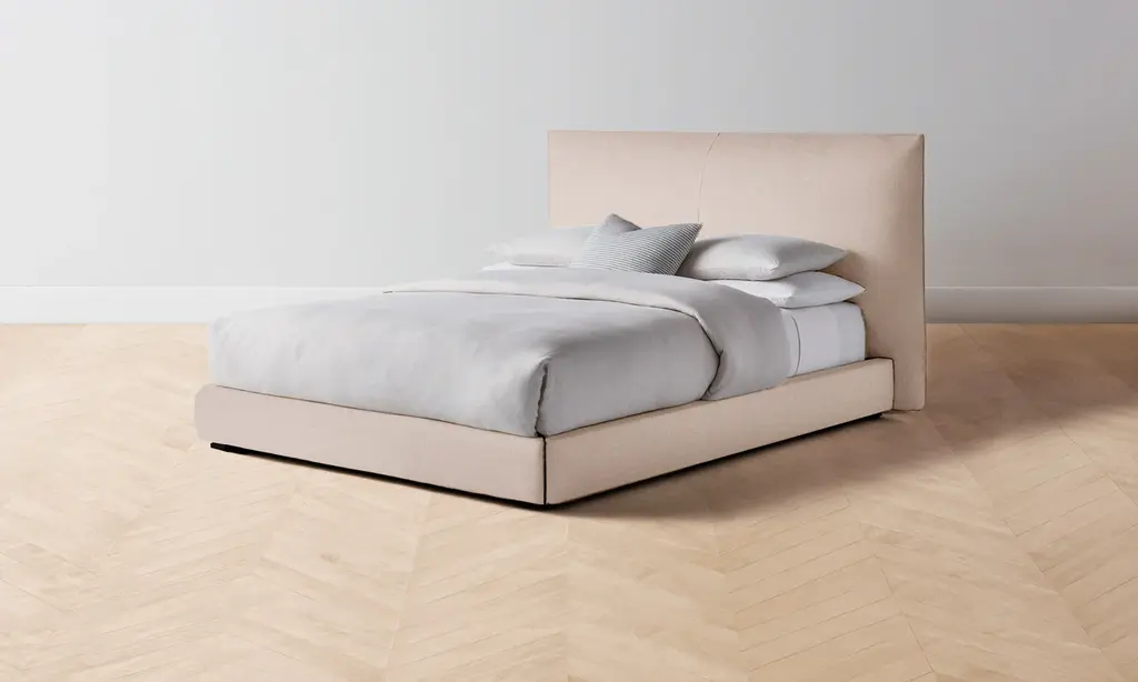 The Essex Bed - Performance Linen Weave Beige - Queen / 50" Height / Charcoal Ash