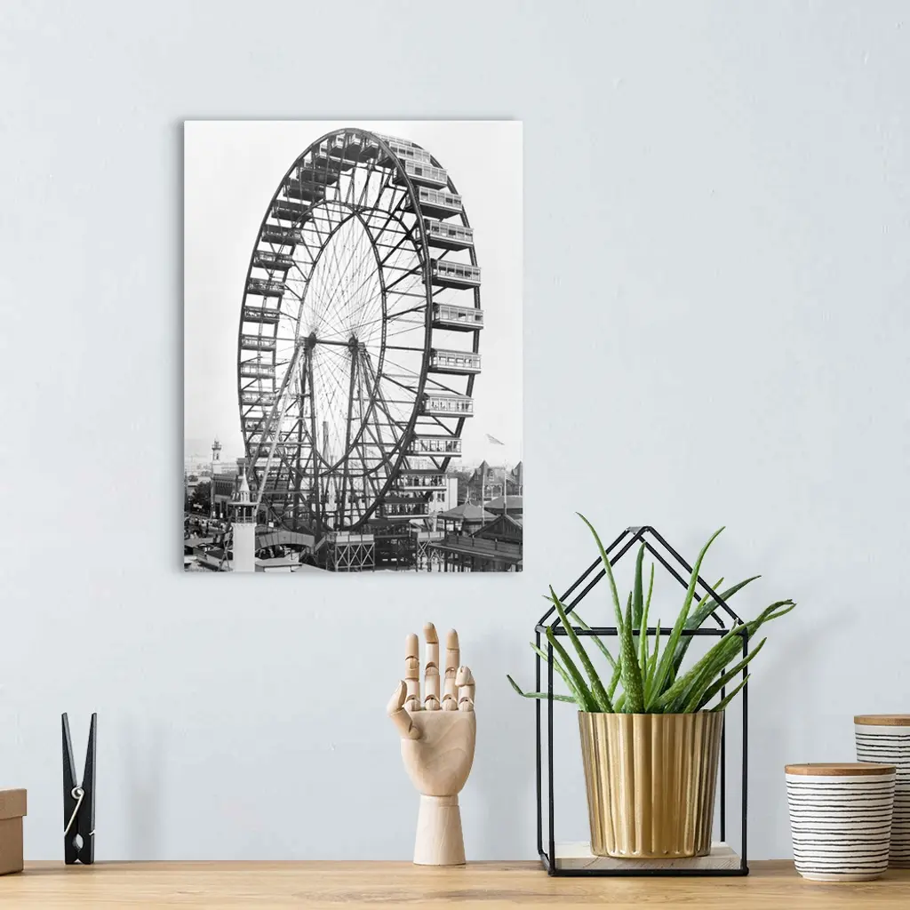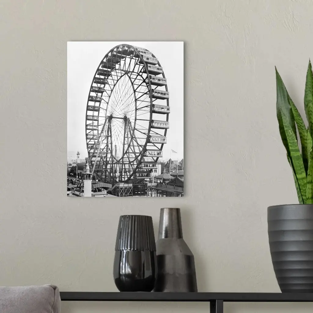 The ferris wheel at the World's Columbian Exposition of 1893 in Chicago wall art for home and office decor. Discover canvas art prints, photos, mural, big canvas art and framed wall art in GreatBigCanvas.com's varied collections.