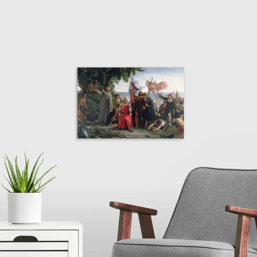 The First Landing of Christopher Columbus (1450-1506) in America, 1862 wall art for home and office decor. Discover canvas art prints, photos, mural, big canvas art and framed wall art in GreatBigCanvas.com's varied collections.