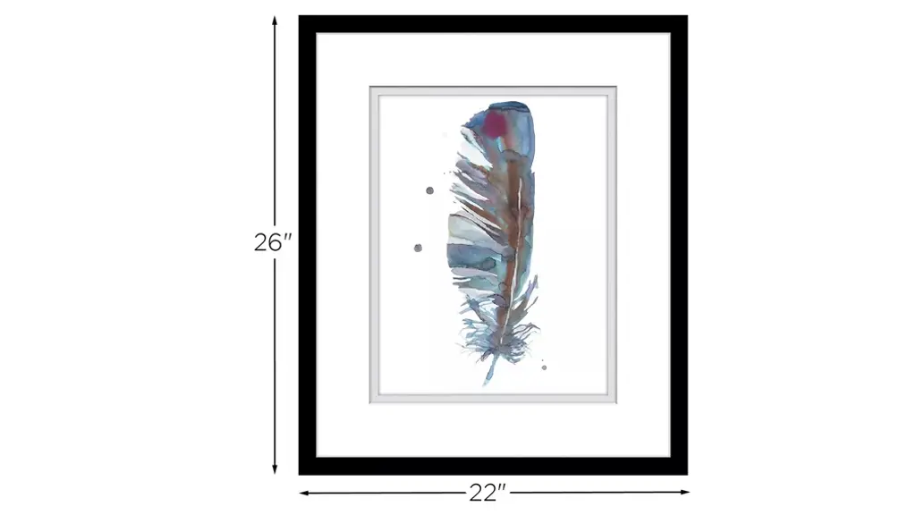 This watercolor Fray 1 wall art piece depicts a feather with rich blue, brown and magenta colors. Hang it in your favorite space for a beautifull addition to your home.