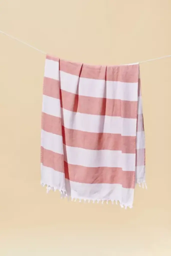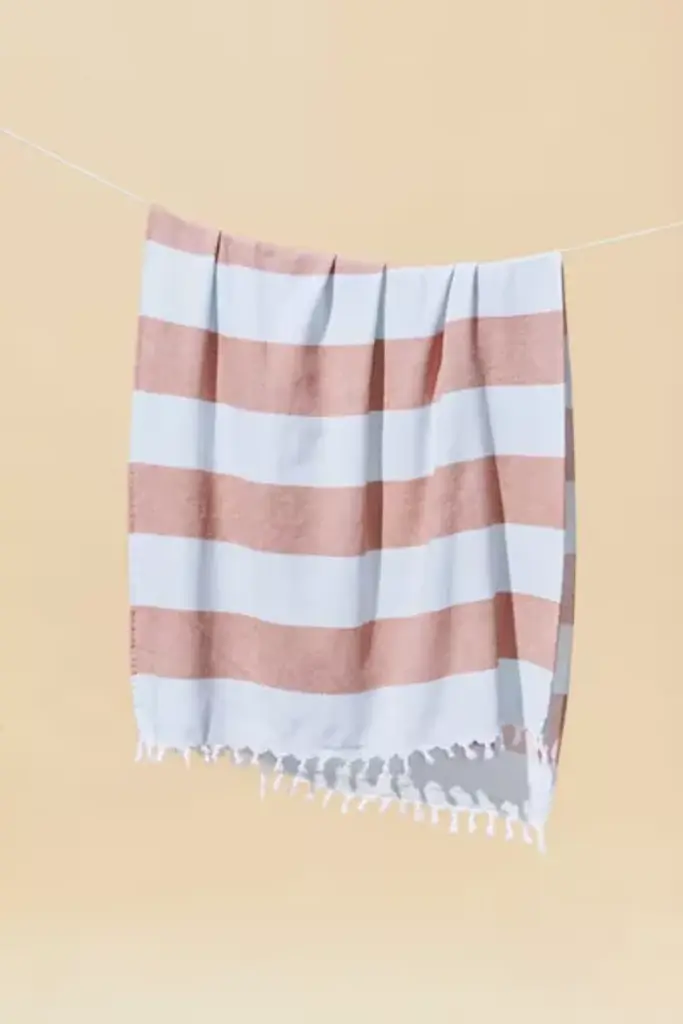 Super lightweight and soft, this 4-pack of striped terry towels is made for adventures. They pack down small and dry quick. Perfect for the campsite, the river or the trunk of your car for last minute trips. Each set of four include one of each color way. **Contents** \- Set of 4 \- 100% cotton \- Machine washable \- Imported **Size** \- 37" W x 69" L. \- Each towel weighs 15oz.