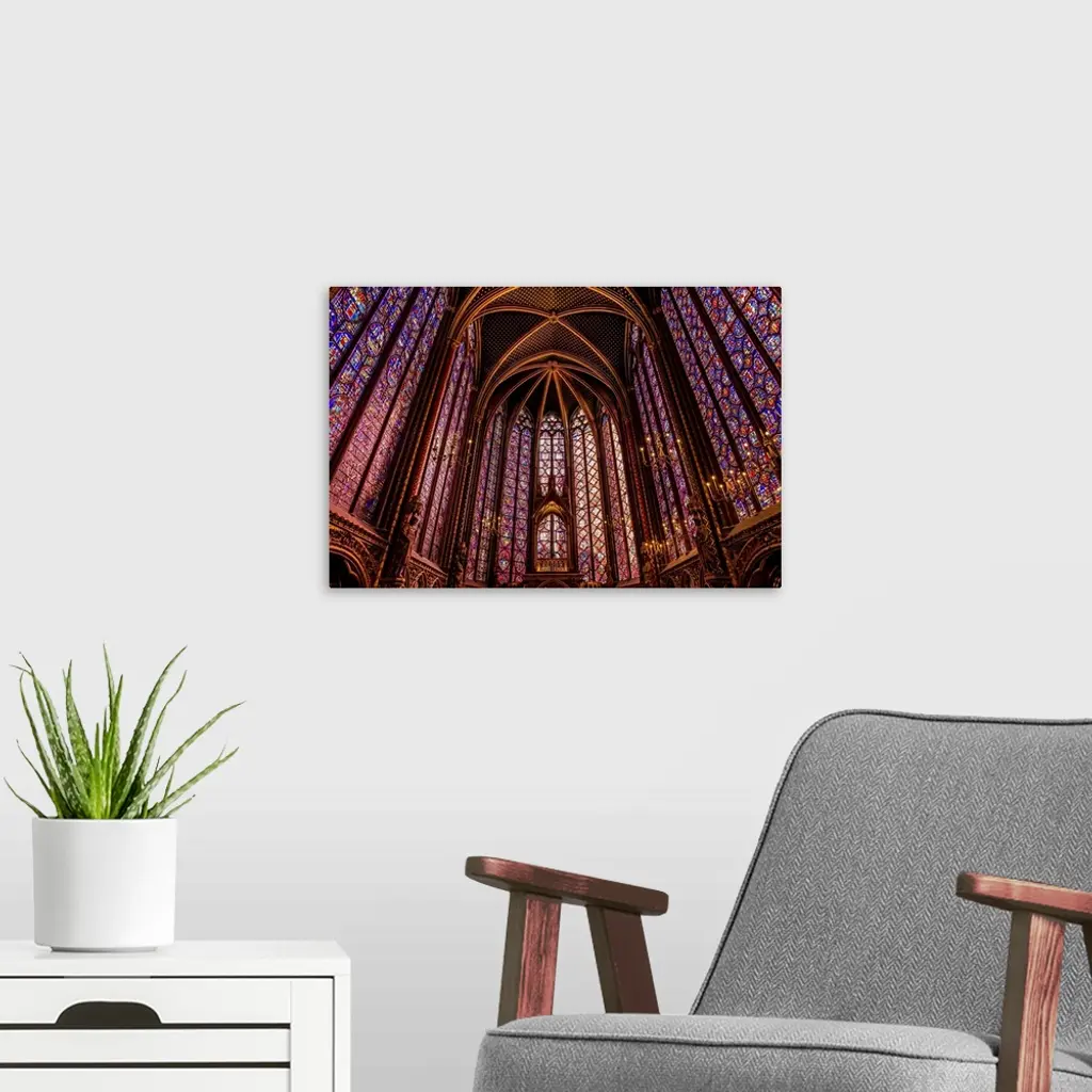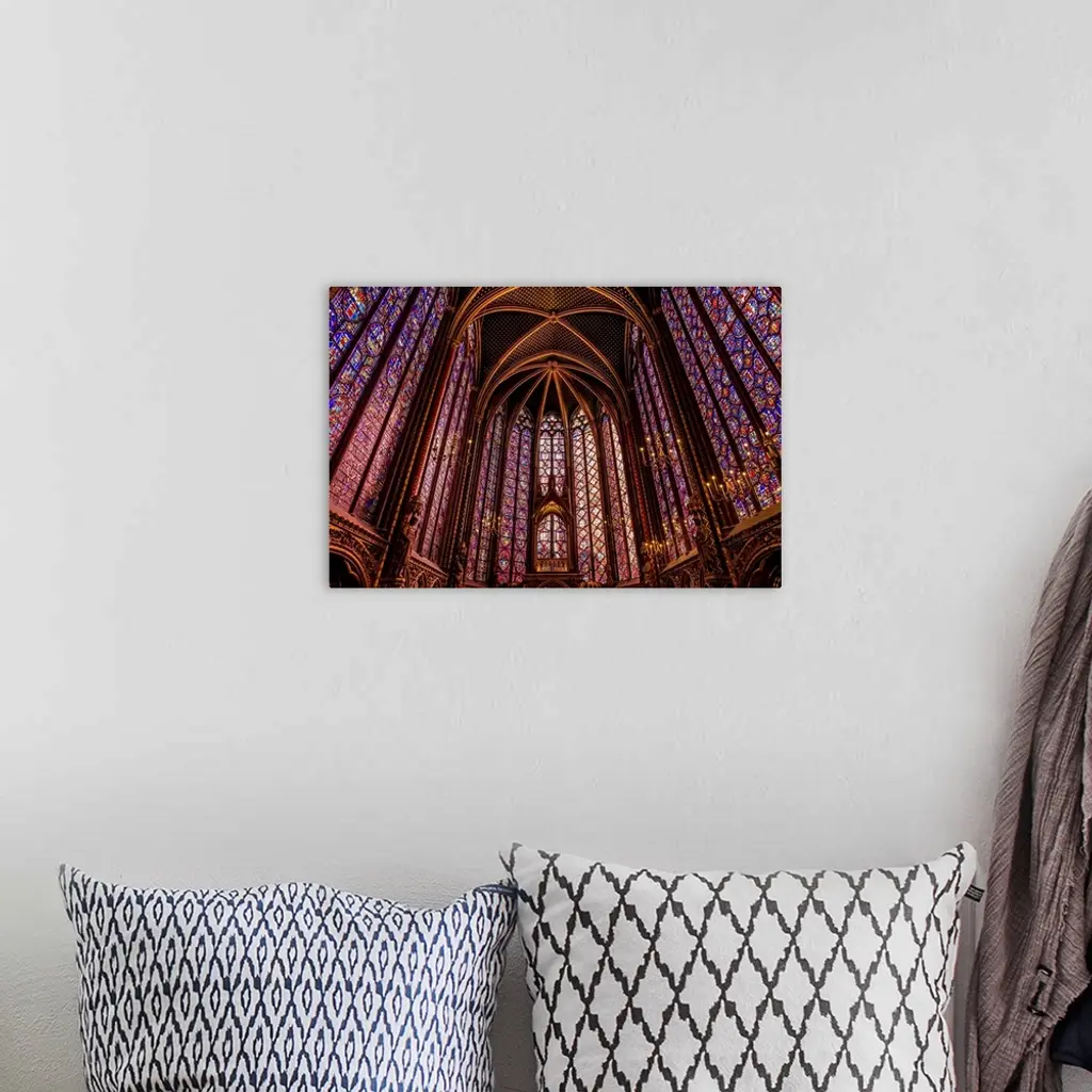 Beautiful stained glass windows at Sainte-Chapelle Cathedral, Paris, France.