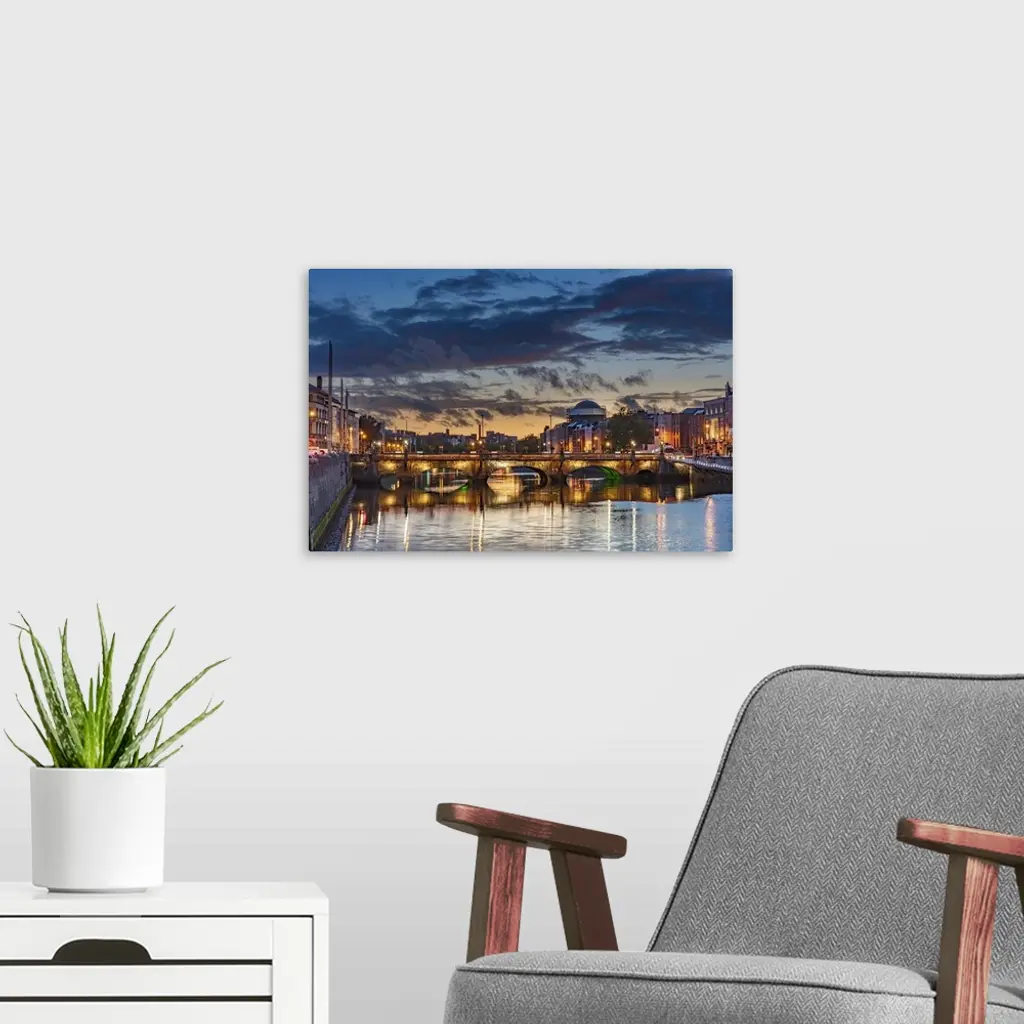 The Grattan Bridge Over The River Liffey At Dusk In Downtown Dublin, Ireland