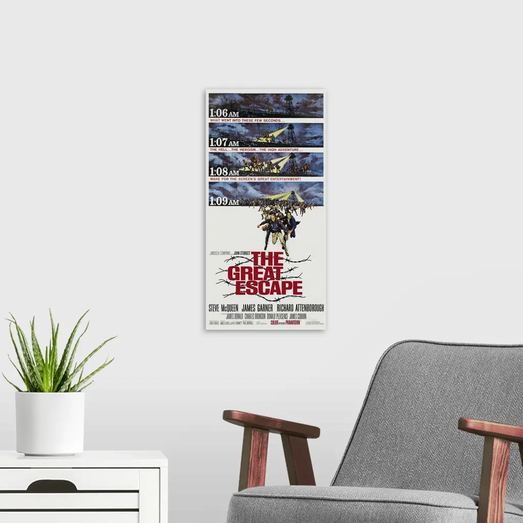 During WWII, troublesome allied POWs are thrown by the Nazis into an escape-proof camp, where they join forces in a single mass break for freedom. One of the great war movies, with a superb ensemble cast and lots of excitement. The story was true, based on the novel by Paul Brickhill. McQueen performed most of the stunts himself, against the wishes of director Sturges. Followed by a made for TV movie 25 years later.