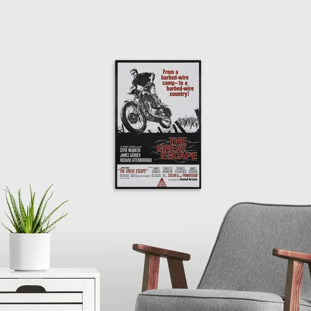 During WWII, troublesome allied POWs are thrown by the Nazis into an escape-proof camp, where they join forces in a single mass break for freedom. One of the great war movies, with a superb ensemble cast and lots of excitement. The story was true, based on the novel by Paul Brickhill. McQueen performed most of the stunts himself, against the wishes of director Sturges. Followed by a made for TV movie 25 years later.