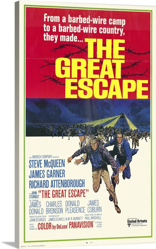 During WWII, troublesome allied POWs are thrown by the Nazis into an escape-proof camp, where they join forces in a single mass break for freedom. One of the great war movies, with a superb ensemble cast and lots of excitement. The story was true, based on the novel by Paul Brickhill. McQueen performed most of the stunts himself, against the wishes of director Sturges. Followed by a made for TV movie 25 years later.