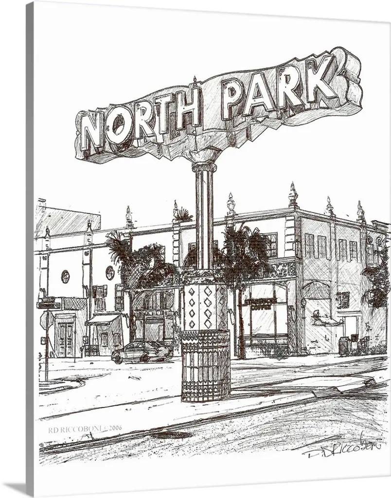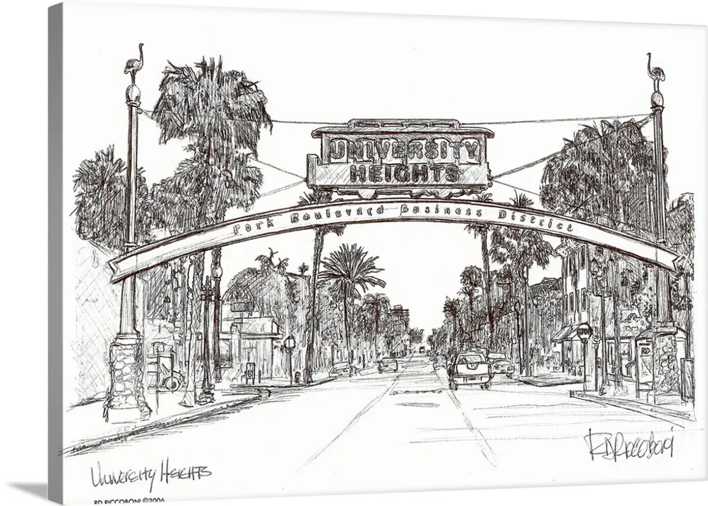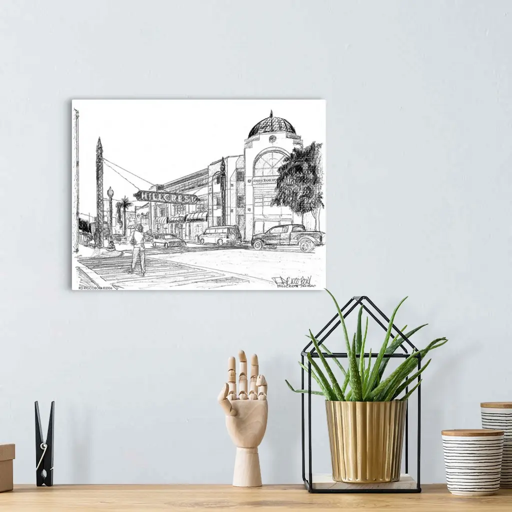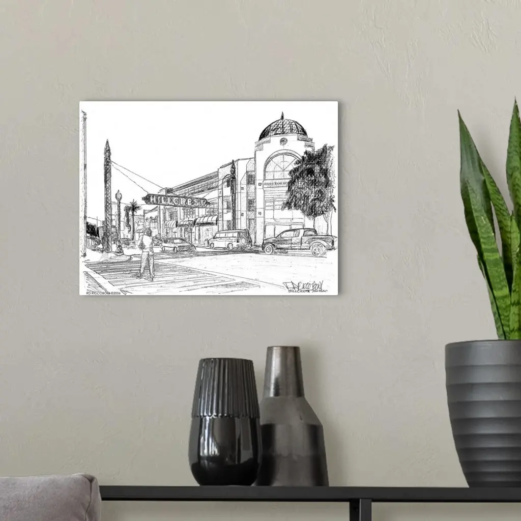 The Hillcrest Sign San Diego California, drawing by american artist RD Riccoboni.