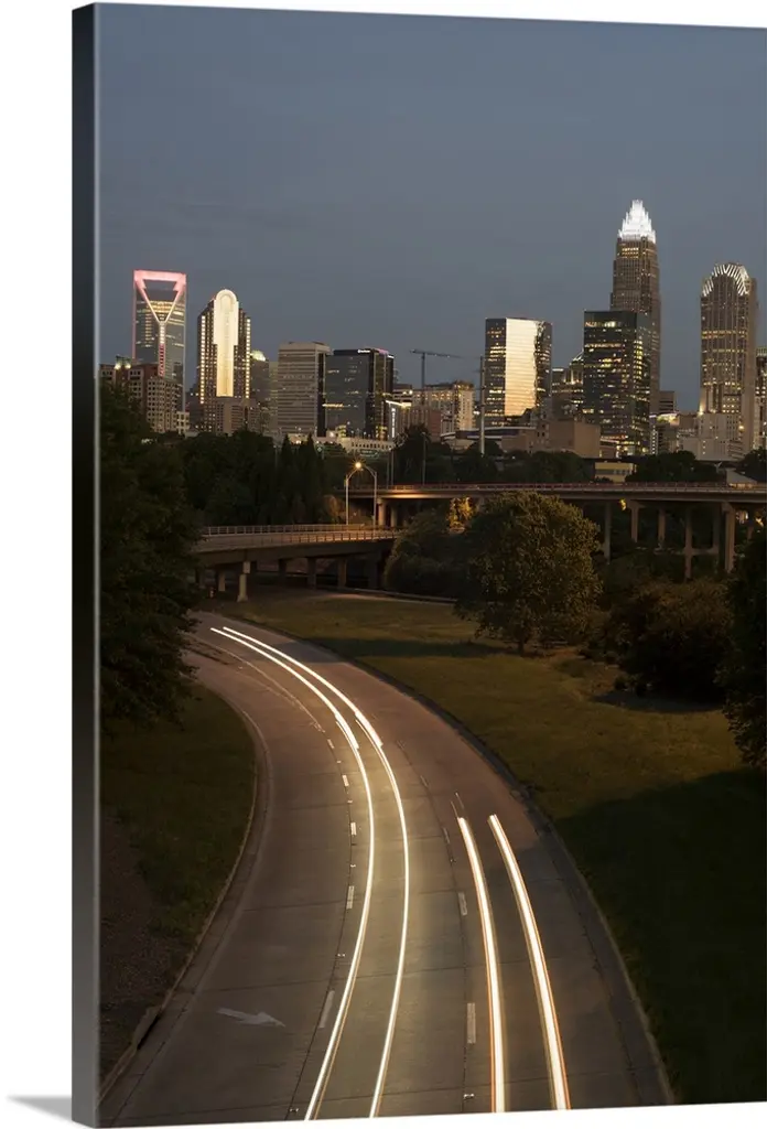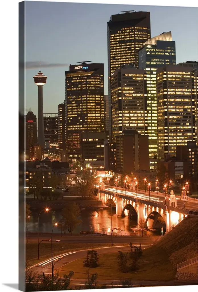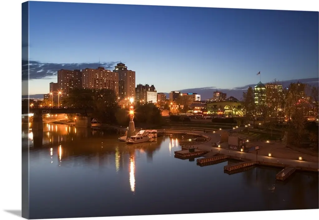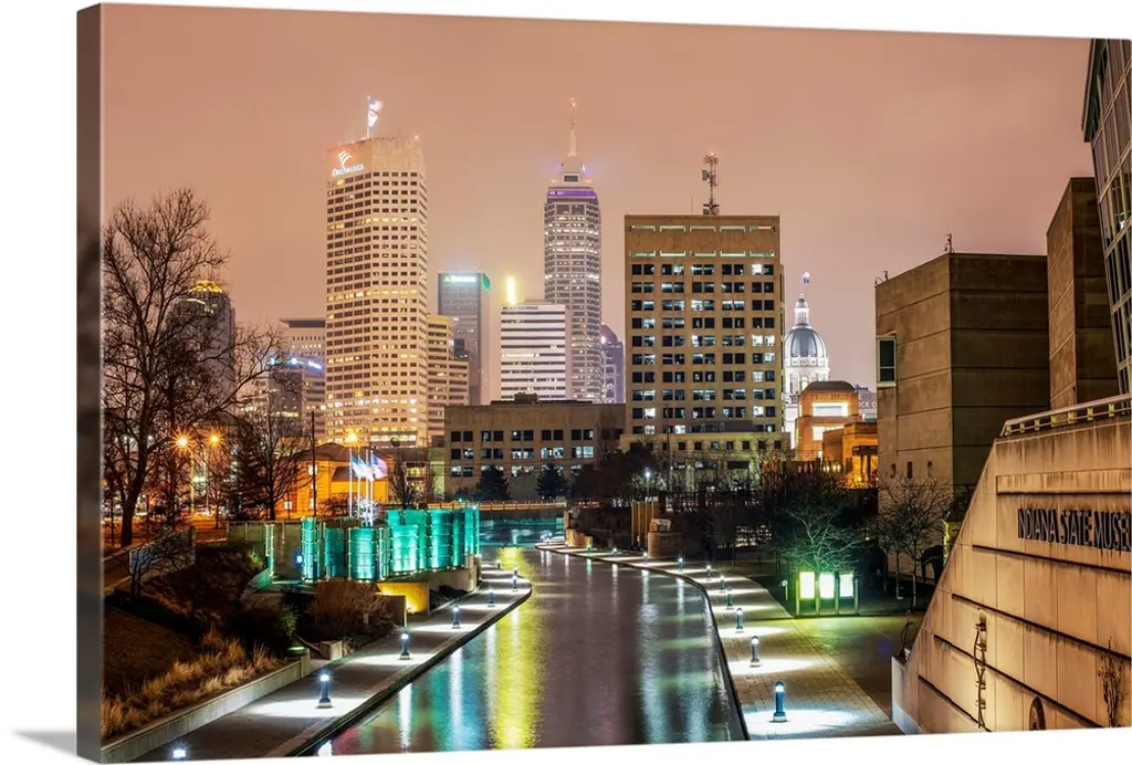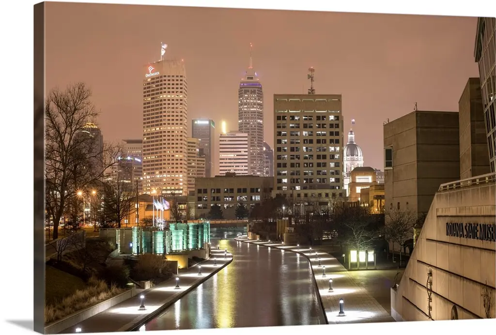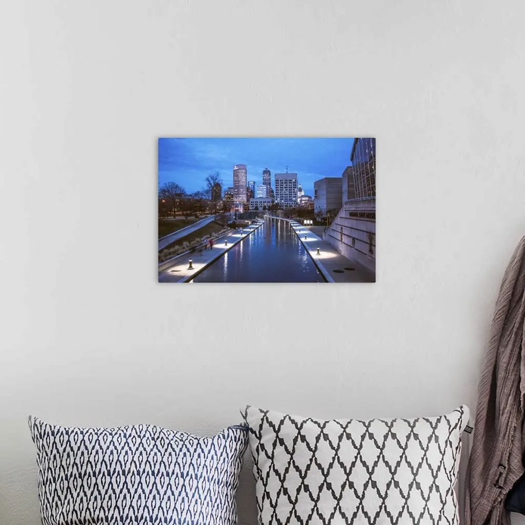 Waterway through the city of Indianapolis, Indiana, just before nightfall.