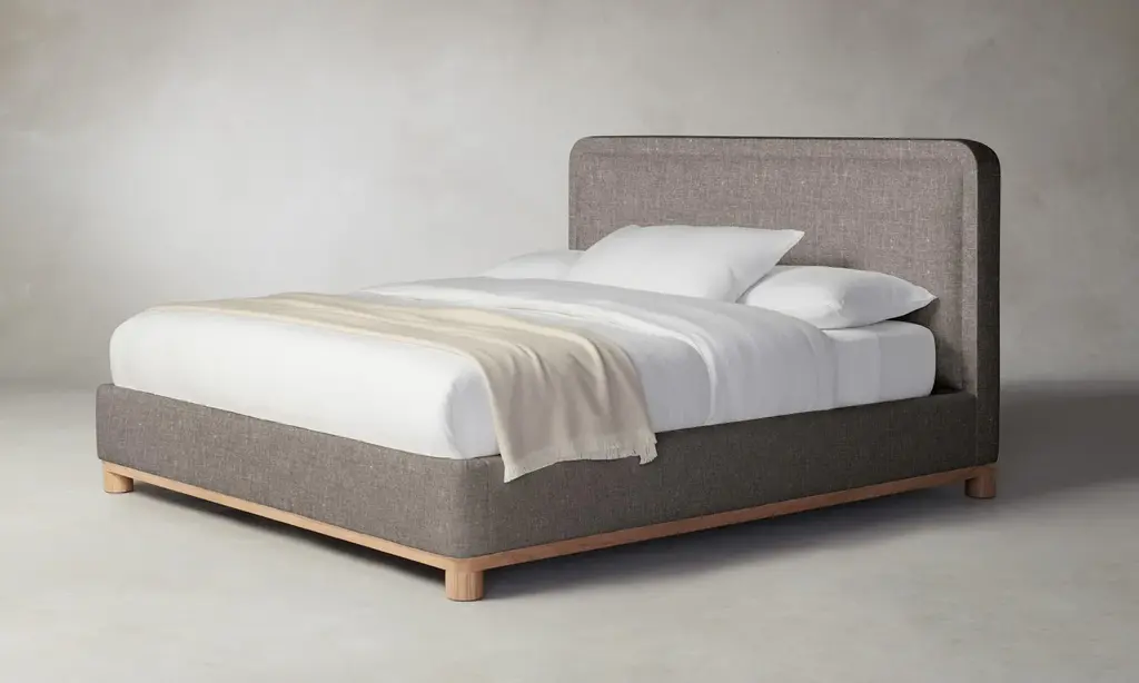 The Kent Bed - Heritage Belgian Linen Agate - Queen / 41" Height / Chocolate Oak