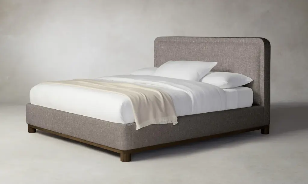The Kent Bed - Heritage Belgian Linen Carob - Queen / 41" Height / Ashen Oak