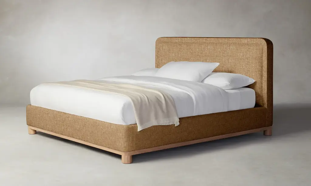 The Kent Bed - Heritage Belgian Linen Chai - Queen / 41" Height / Natural Oak
