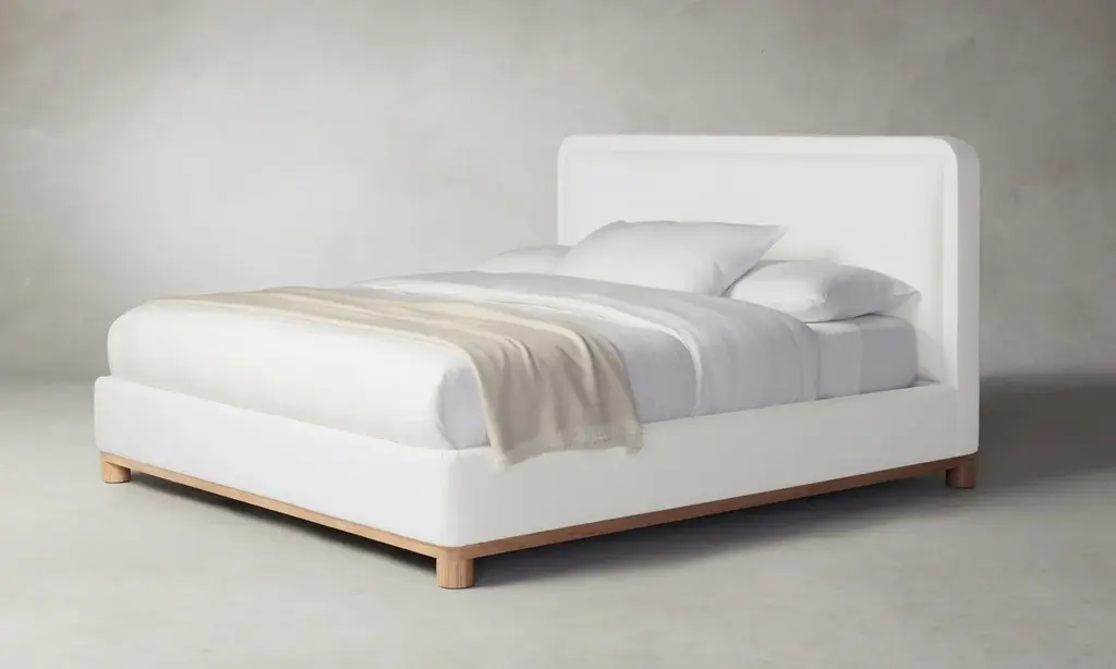 The Kent Bed - Heritage Belgian Linen Egret - Queen / 41" Height / Toasted Oak