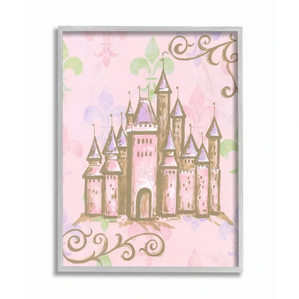 The Kids Room By Stupell Castle With Fleur De Lis On Pink Background Grey Framed, 16 X 20, Proudly Made In Usa - 16 X 20 - Wood - Grey - 16 X 20
