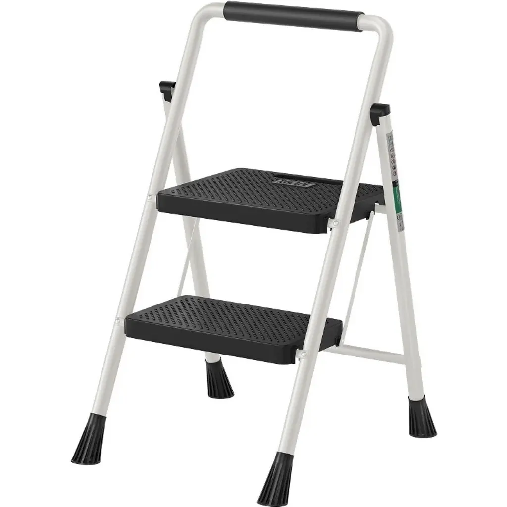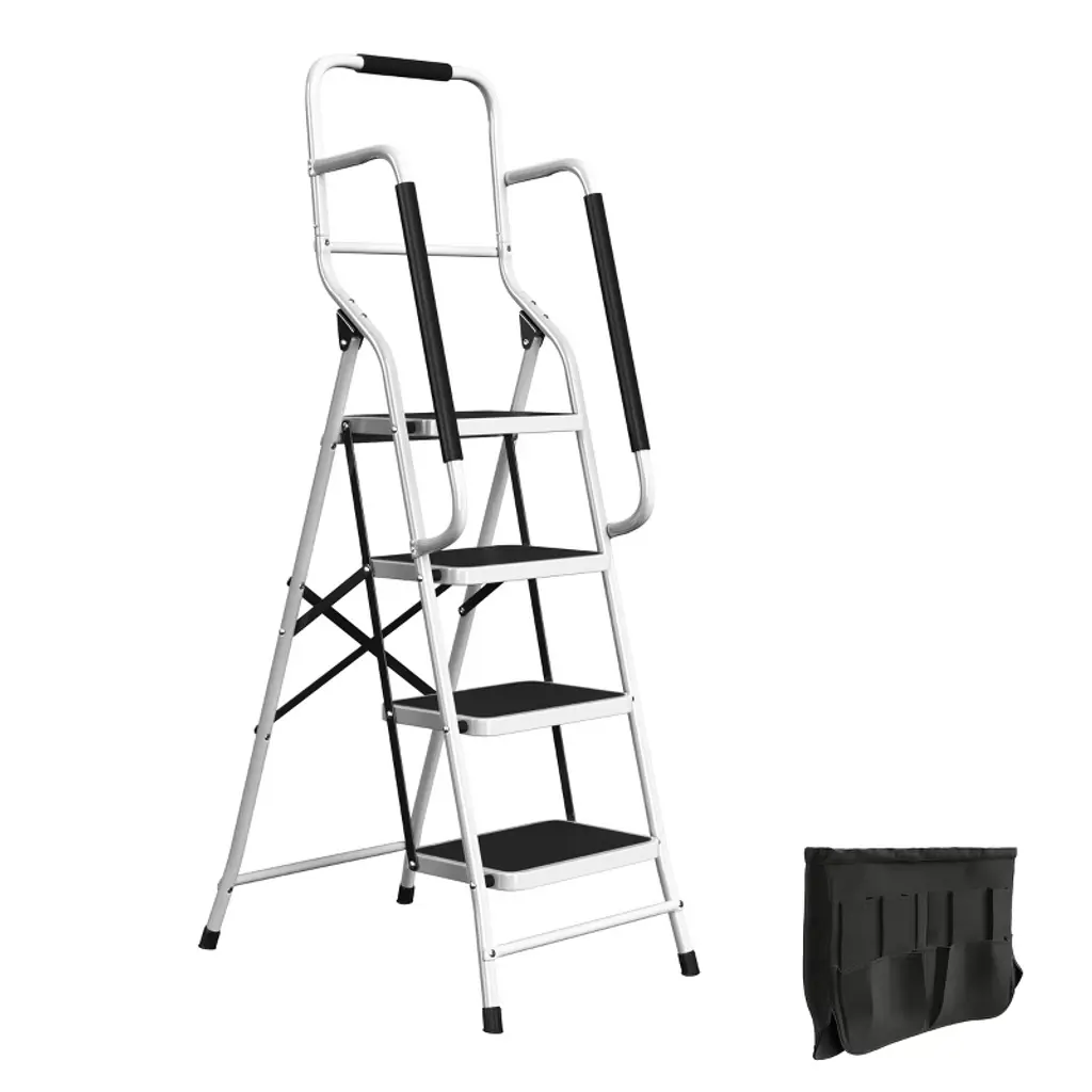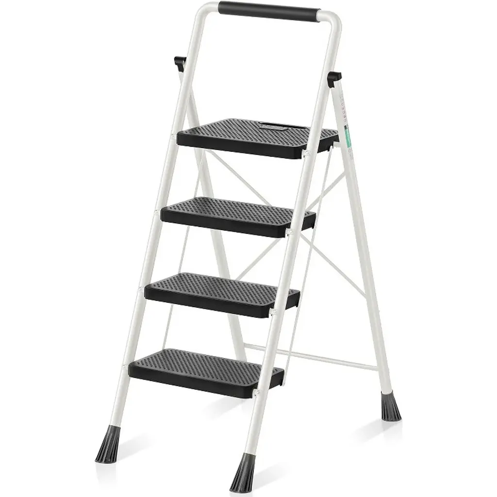 Safely get up to those hard-to-reach places for cleaning, decorating or retrieving items with this project ladder that has 3 steps and folds for compact storage. It features foam padded handrails, extra wide steps with nonslip treads and padded feet that won't scratch floors. The space saving design folds flat for easy transport and storage when not in use. Steel. 18"W x 27-1/2"D x 43"H