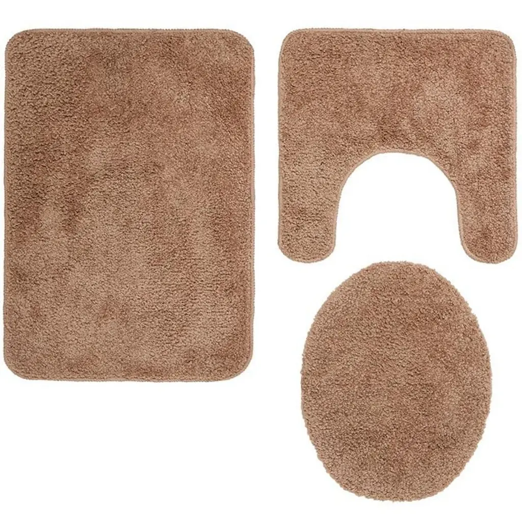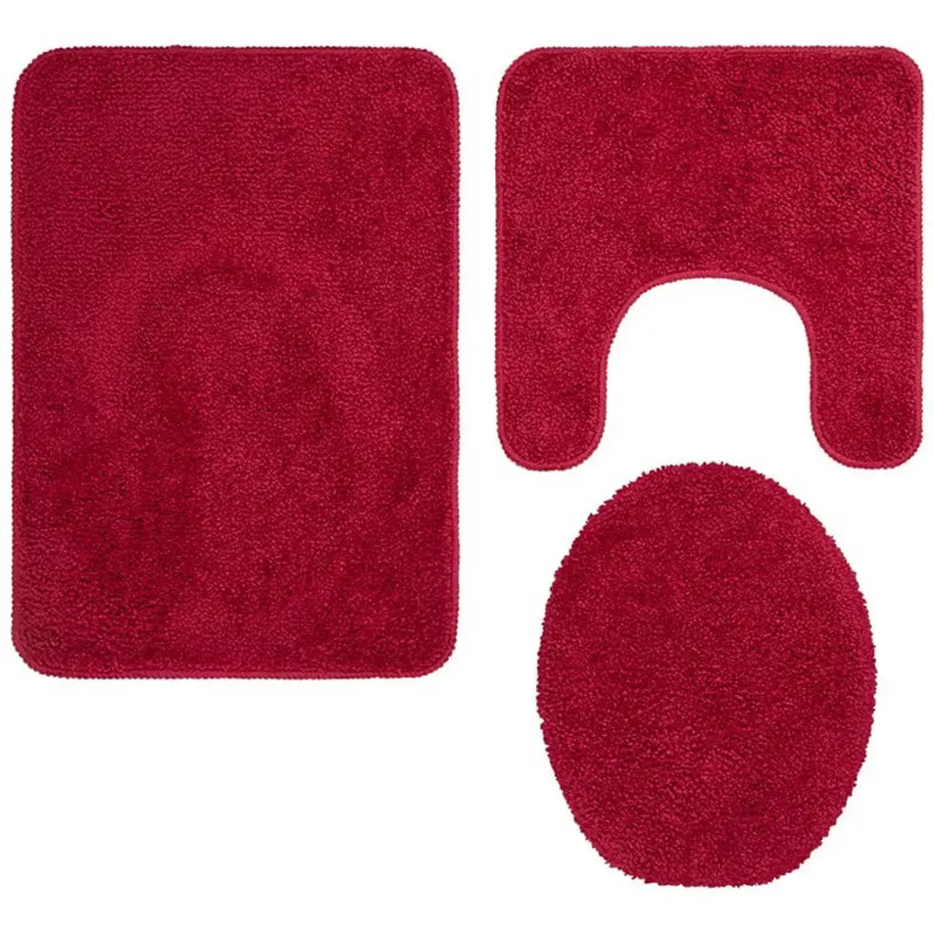 Expertly designed 3-Pc. Bath Rug Sets bring new style to your bathroom decor. Step into a world of comfort and color as these rugs transform your space with their vibrant shades of Chambray Blue, Burgundy, Dark Gray, and Beige. Non-skid backing ensuring that your rugs stay firmly in place without slipping. You'll love the soft, plush feel underfoot as you start your day with a touch of luxury. Perfect for any bathroom setting, these rugs are not just about looks. They also provide a practical solution to cold, hard floors while they coordinate the room. The contour rug fits snugly around your toilet, while the lid cover adds a cohesive touch to your decor. Whether you're stepping out of the shower or brushing your teeth, these rugs provide warmth and comfort. Redefine your bath with these essential pieces.Key Features: Available in Chambray Blue, Burgundy, Dark Gray, and BeigeNon-skid backing for safety Plush and comfortable underfoot Complements any bathroom decor Easy to maintain and durable. Made of: Polyester and rubber Set includes: , Bath rug, 16"W x 24.25"L, Contour, 16"W x 16"L, Lid cover, 14"W x 17"L Care instructions: Machine care Notes: