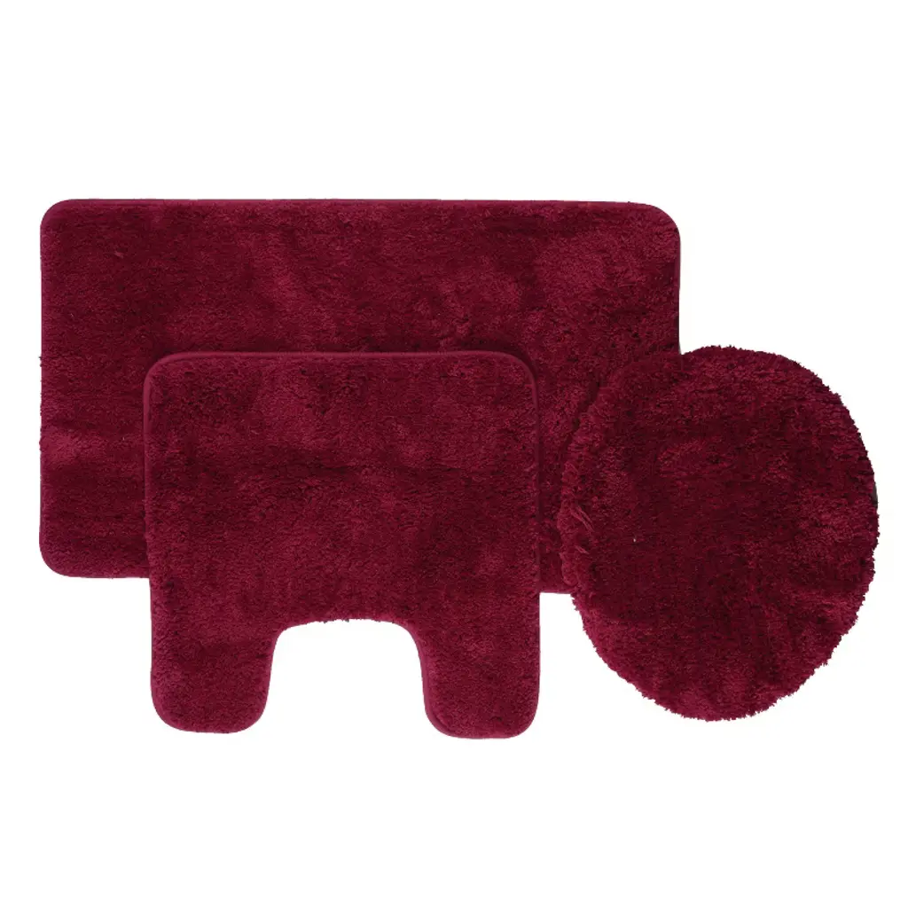 Expertly designed 3-Pc. Bath Rug Sets bring new style to your bathroom decor. Step into a world of comfort and color as these rugs transform your space with their vibrant shades of Chambray Blue, Burgundy, Dark Gray, and Beige. Non-skid backing ensuring that your rugs stay firmly in place without slipping. You'll love the soft, plush feel underfoot as you start your day with a touch of luxury. Perfect for any bathroom setting, these rugs are not just about looks. They also provide a practical solution to cold, hard floors while they coordinate the room. The contour rug fits snugly around your toilet, while the lid cover adds a cohesive touch to your decor. Whether you're stepping out of the shower or brushing your teeth, these rugs provide warmth and comfort. Redefine your bath with these essential pieces.Key Features: Available in Chambray Blue, Burgundy, Dark Gray, and BeigeNon-skid backing for safety Plush and comfortable underfoot Complements any bathroom decor Easy to maintain and durable. Made of: Polyester and rubber Set includes: , Bath rug, 16"W x 24.25"L, Contour, 16"W x 16"L, Lid cover, 14"W x 17"L Care instructions: Machine care Notes: