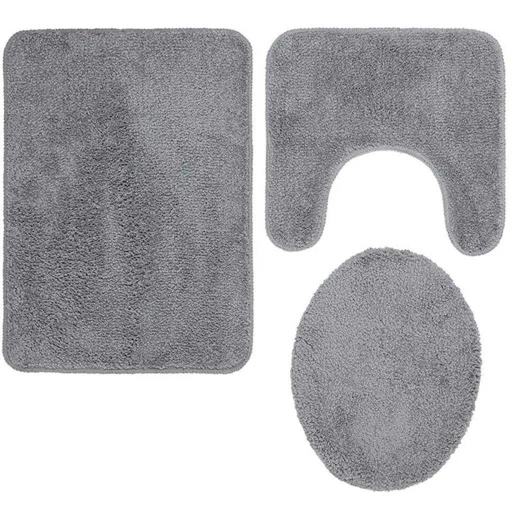 The Lakeside Collection Bath Rug Set With Anti-skid Backing: Bath Mat, Contour Rug, Lid Cover - Dark Gray