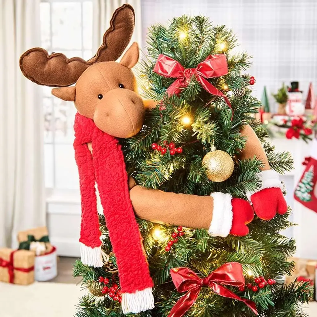 Christmas Character Tree-Top Hugger gives your holiday decor extra personality. Position its long arms around the top branches of the tree, use it as a window panel tie back or add it to a display of garland on a mantel. Made of: Polyester and polyfill Measurements: 32"W x 4"D x 14"H
