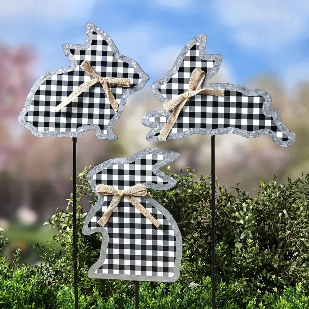 The Lakeside Collection Galvanized Gingham Bunny Stakes - Standing