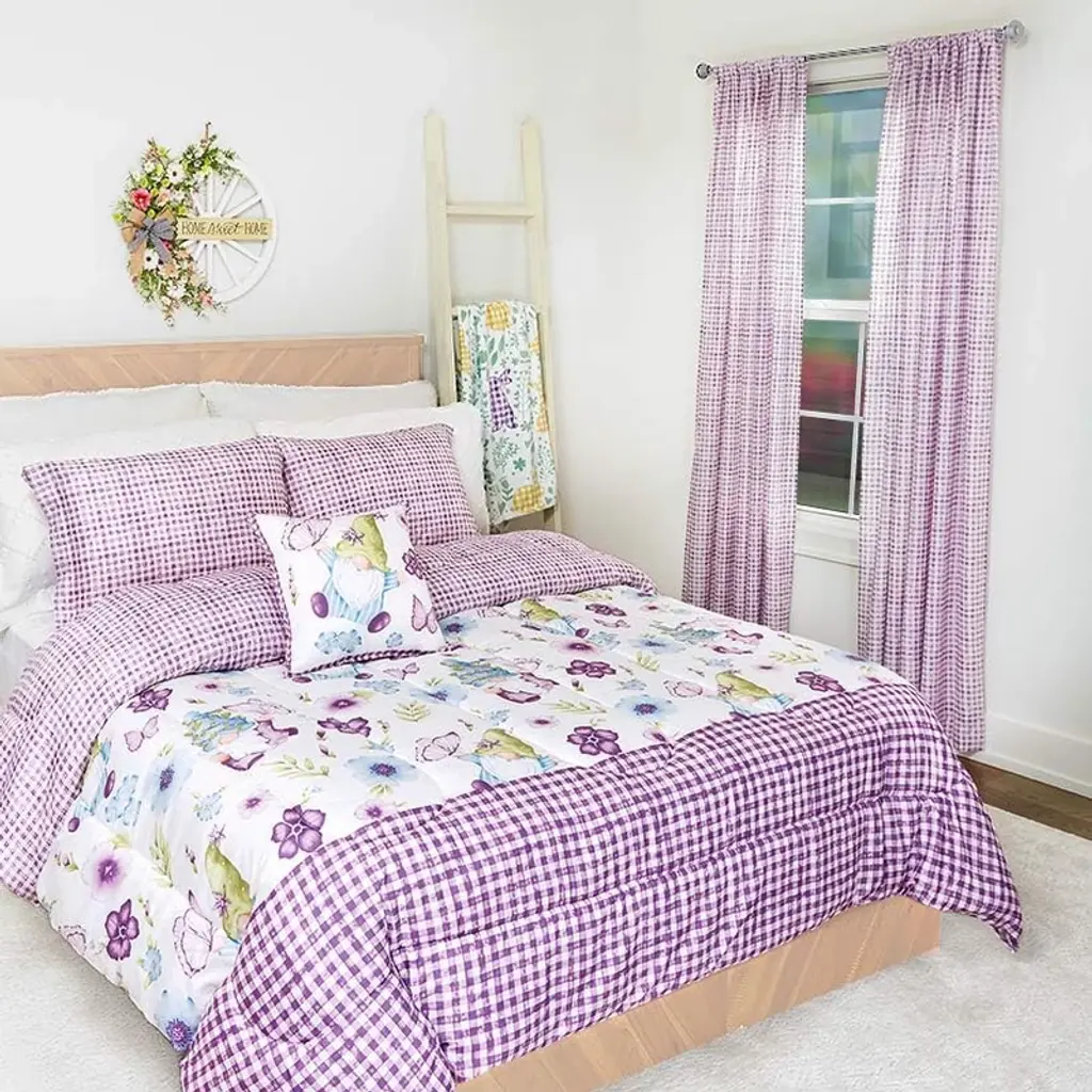 Give any room some color with Gnome Burst Window Panels. The purple-and-white check pattern coordinates with our Gnome Burst bedding to create a themed look. Easy to hang with a rod pocket. Made of: Polyester Measurements: 50"W x 84"L 50"W x 63"L Care: Machine wash Notes: Imported