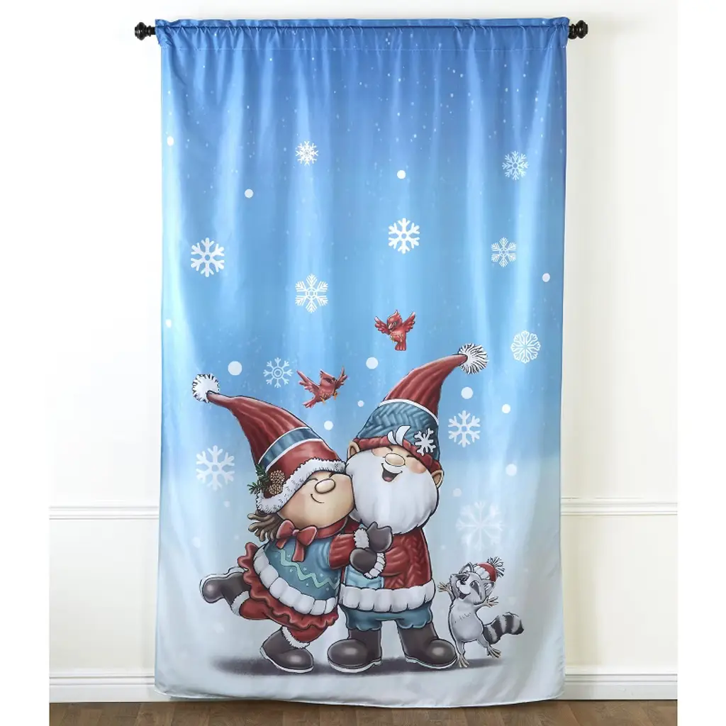 Decorate for the holidays by adding gnome Christmas decorations to your home décor. Replace your day-to-day window treatments with curtains featuring the Christmas gnomes, Petunia and Gnorme. Winter gnome accents are cute as room décor in your bedroom or as curtains for the living room. These Christmas gnome window panels will add a bit of fun to your living room décor. 52"W x 63"L. Polyester. Machine care.