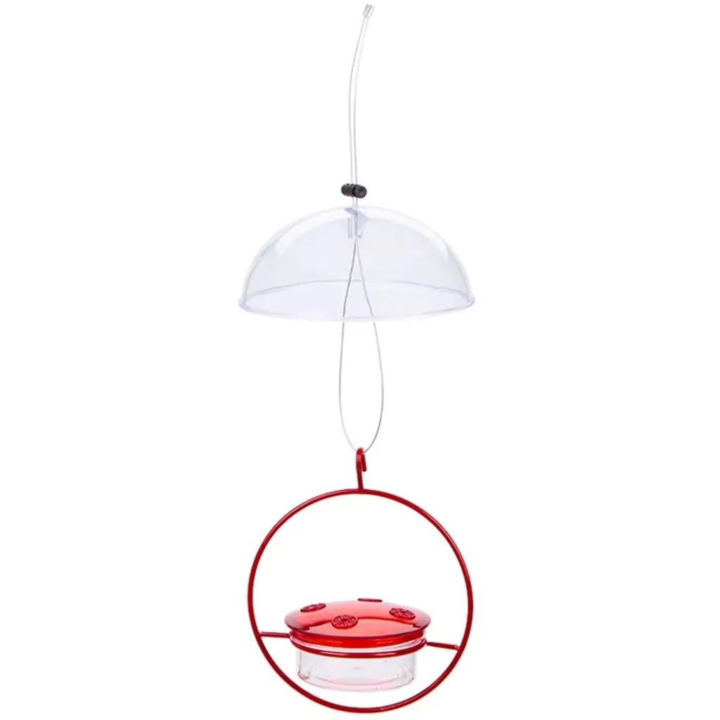 Invite some of nature's most beautiful flyers to your garden with our Red Hummingbird Feeder. This hanging feeder makes it simple to attract the tiny, jewel-like birds. They are drawn to the feeder's red color, and the removeable cover ensures it is easy to refill. Made of: Polypropylene and metal Measurements: 6-1/4" dia. x 10"H