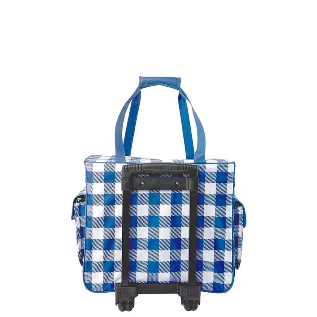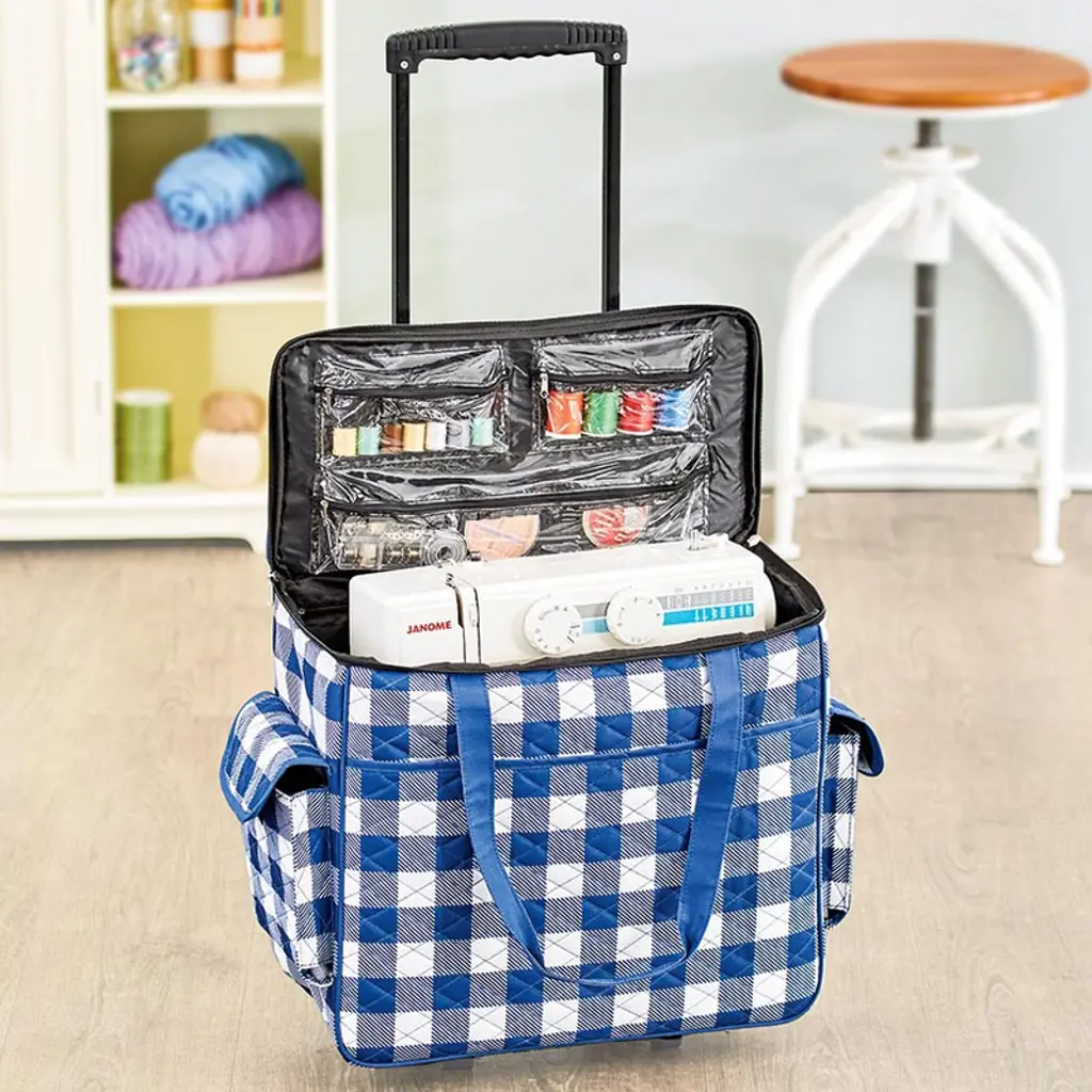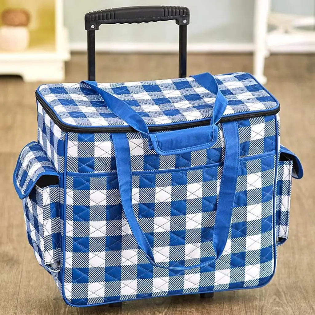 The Lakeside Collection Rolling Sewing Machine Totes - Navy Buffalo Check