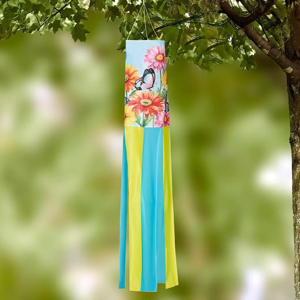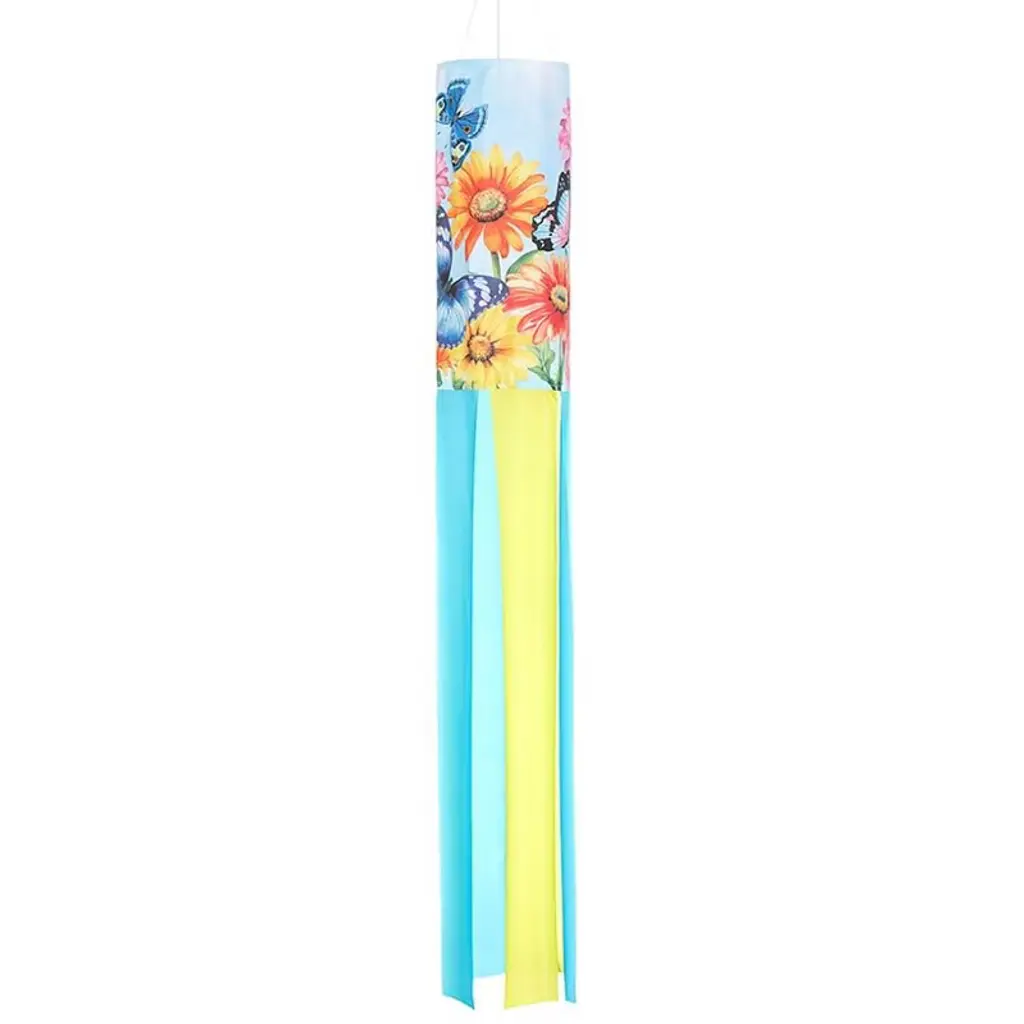 Dress up your porch or outdoor space with a Spring Windsock. Generously sized decoration flutters in every breeze, giving your yard extra color and movement. Made of: Polyester Measurements: 8" dia. x 48"L Care: Spot clean Notes: