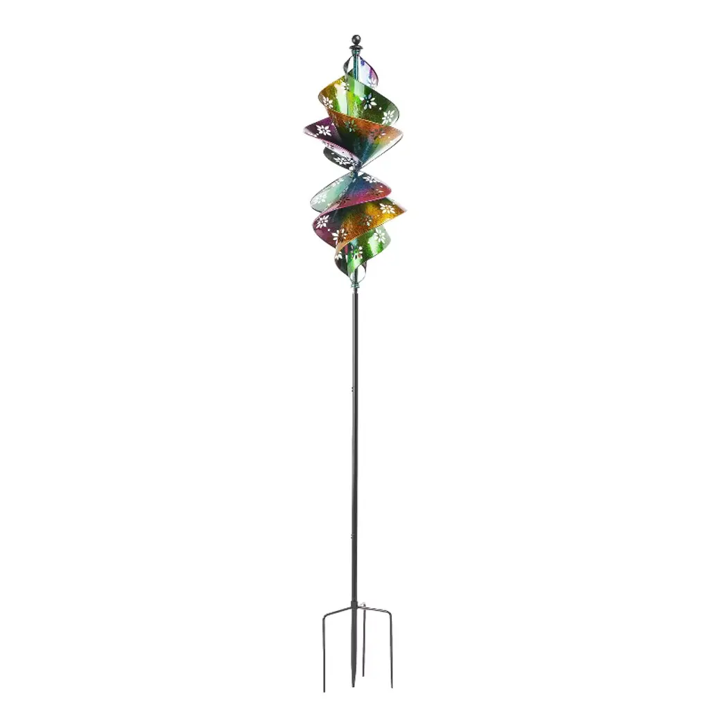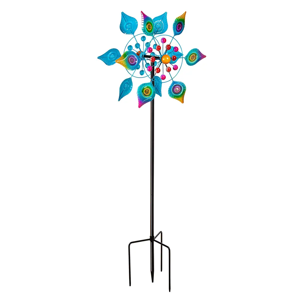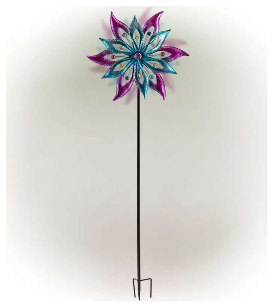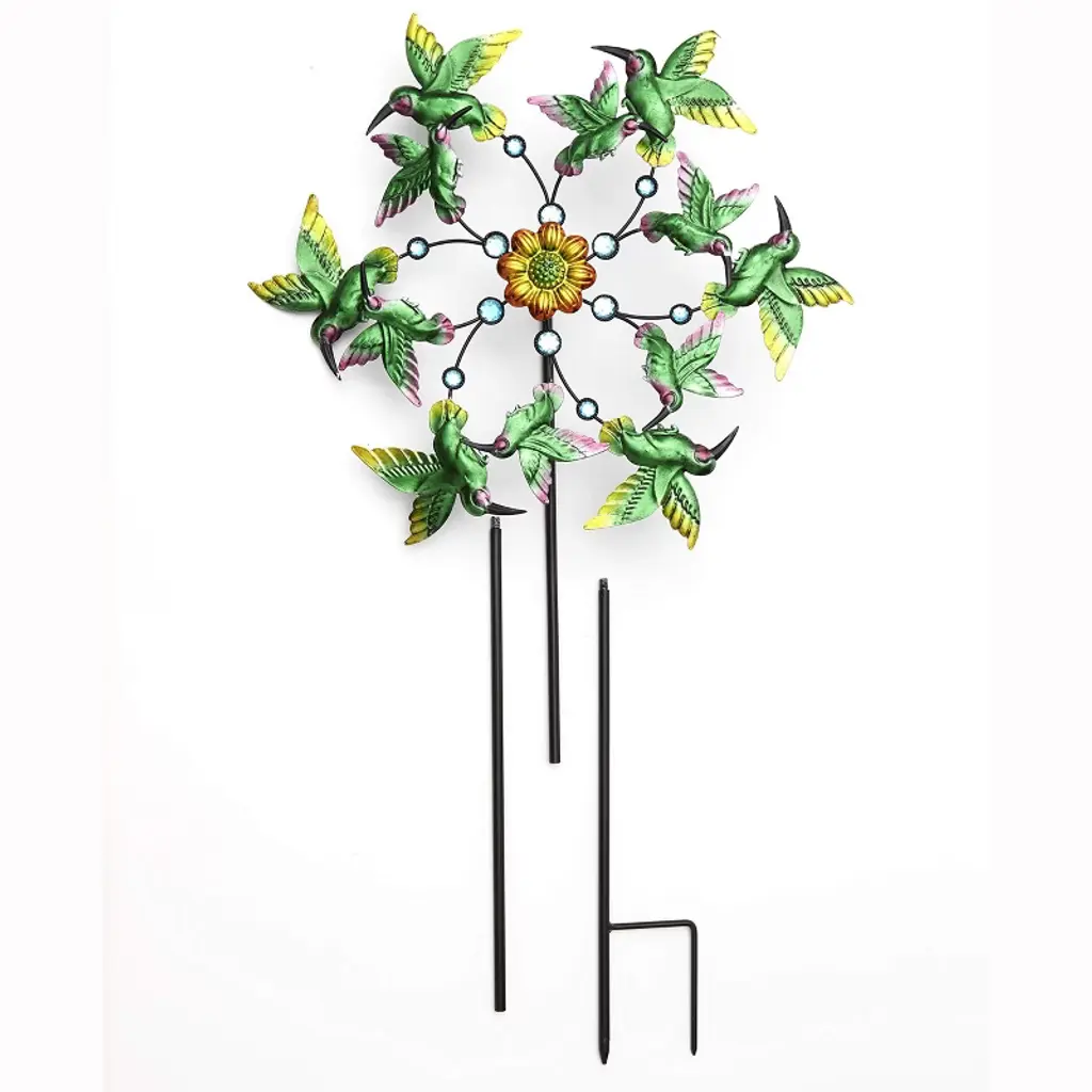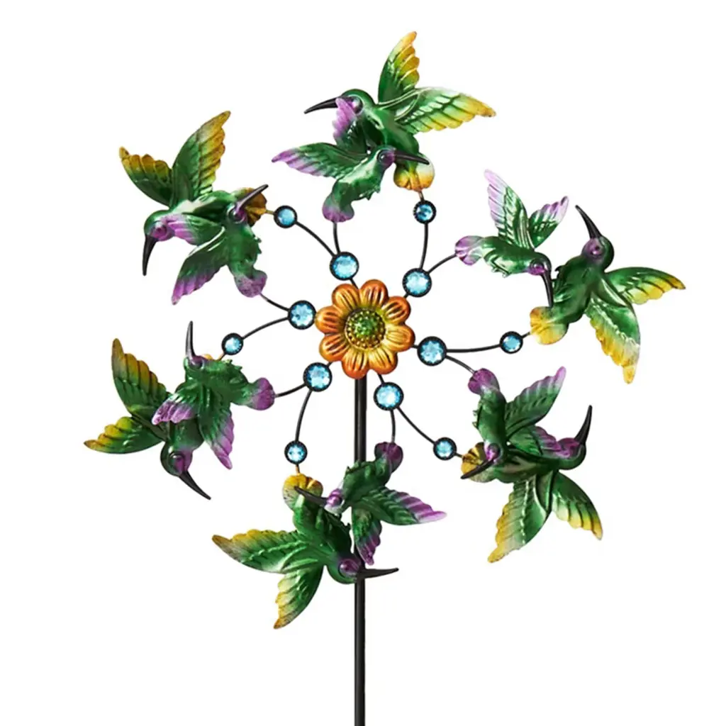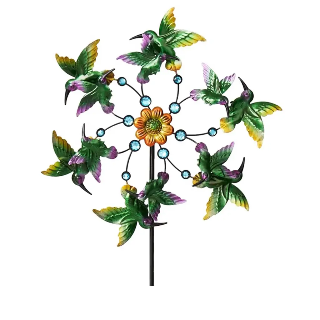 Add a unique animated touch to your outdoor spaces with this decorative hummingbird wind spinner yard ornament. It spins in the wind and contributes beautiful color to your yard or garden. No matter where you place this wind spinner yard ornament, it will catch the eye of anyone passing by. Metal and PVC. 16-1/8"W x 3-1/2"D x 48-1/2"H, including the 5" ground stake.