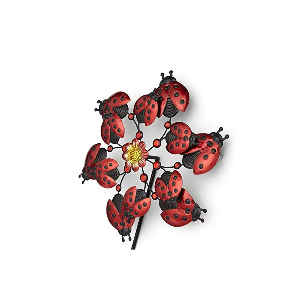 The Lakeside Collection Windspinner Stakes Garden Metallic Butterfly Ladybug And Hummingbird - Ladybug