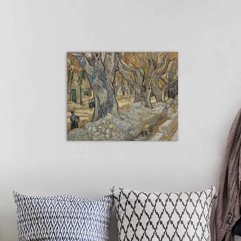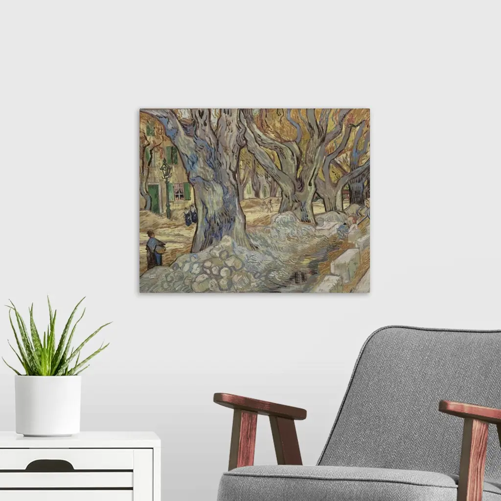 The Large Plane Trees, Or Road Menders At Saint-Remy, 1889 wall art for home and office decor. Discover canvas art prints, photos, mural, big canvas art and framed wall art in GreatBigCanvas.com's varied collections.
