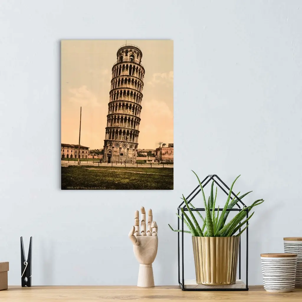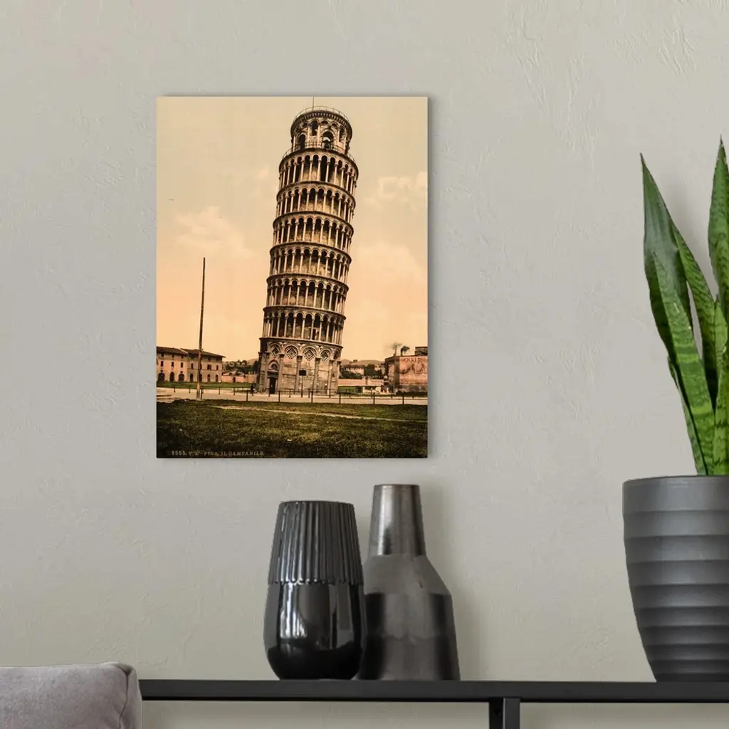 Hand colored photograph of the leaning tower, Pisa, Italy.