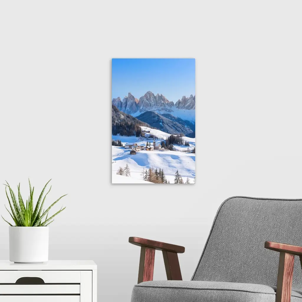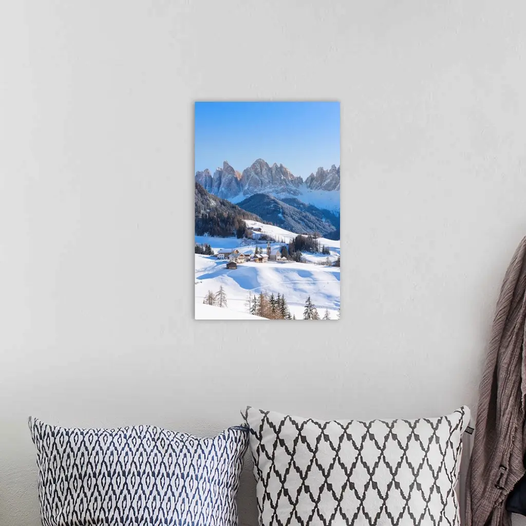 The Little Village Of Santa Magdalena In Funes With The Odle Dolomites, Italy